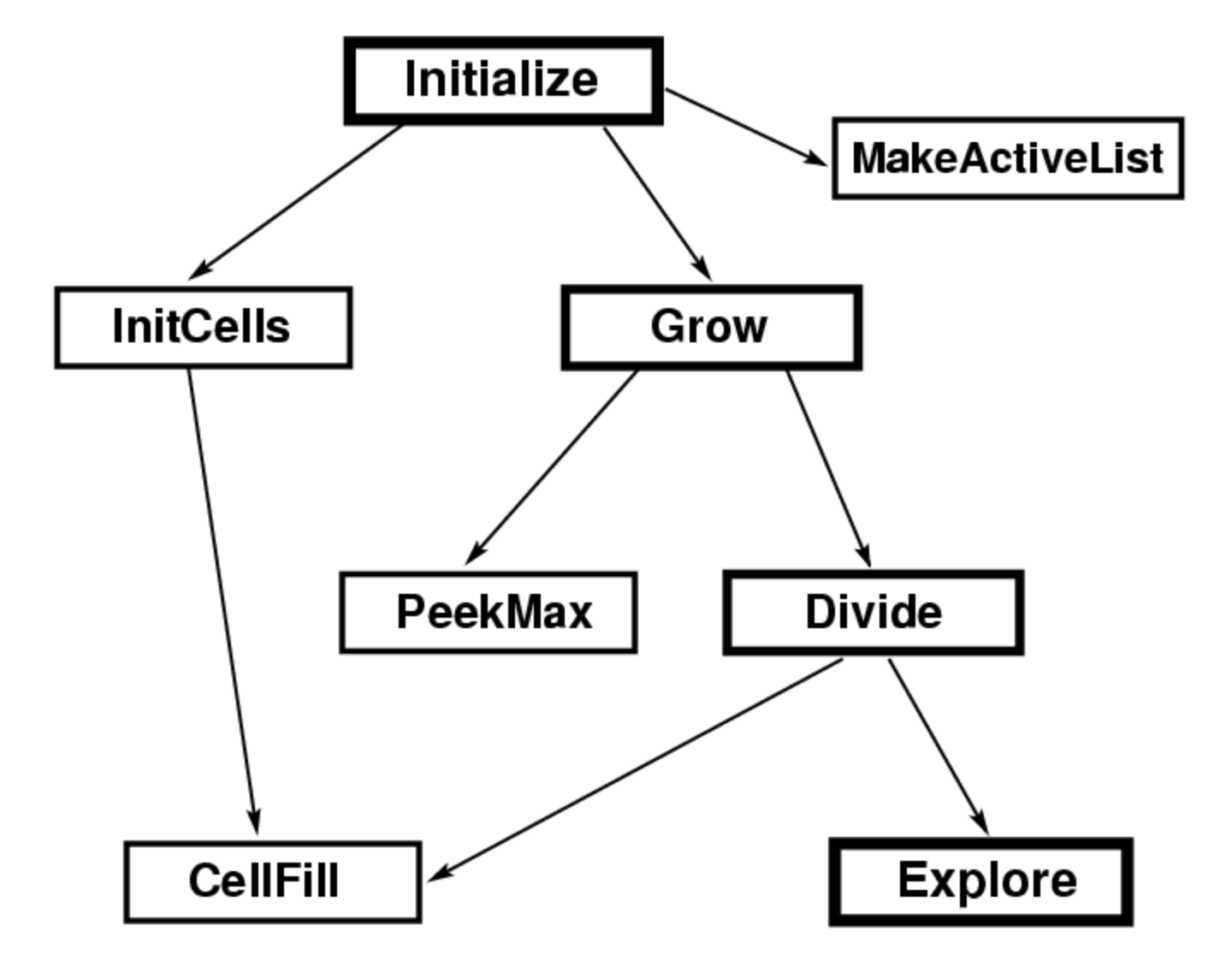 FOAM is the simplified version of the multi-dimensional general purpose Monte Carlo event generator (integrator) FOAM. It creates hyper-rectangular "foam of cells", which is more dense around its peaks. See the following 2-dim. example of the map of 1000 cells for doubly peaked distribution: