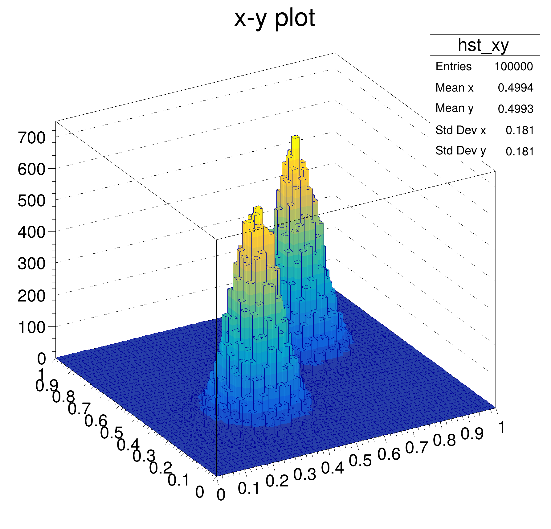 The above can be redefined before calling Initialize() method, for instance FoamObject->SetkDim(15) sets dimension of the distribution to 15. Only kDim HAS TO BE redefined, the other parameters may be left at their defaults. nCell may be increased up to about million cells for wildly peaked distributions. Increasing nSampl sometimes helps, but it may cost CPU time. MaxWtRej may need to be increased for wild a distribution, while using OptRej=0.