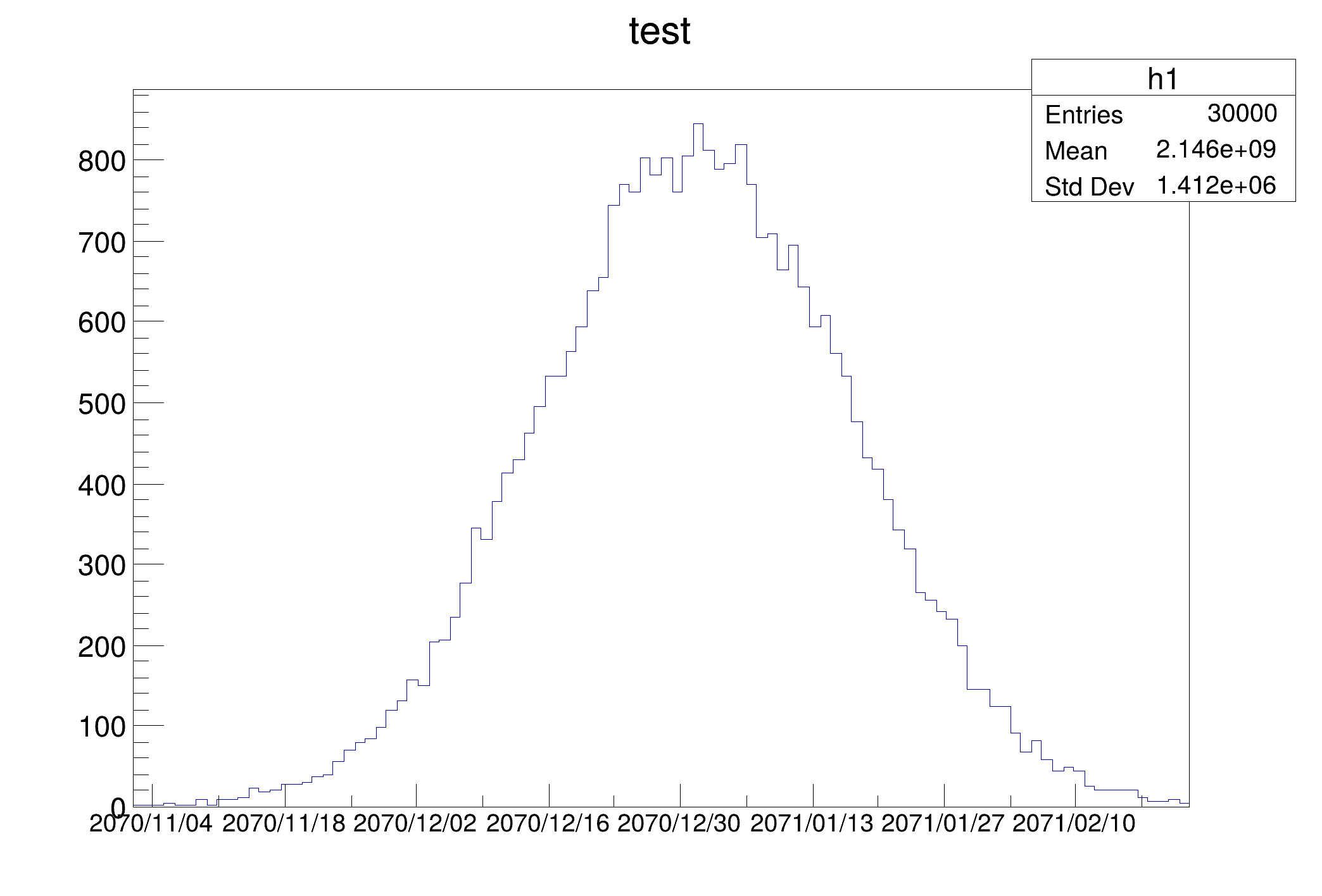 If no time offset is defined for a particular axis, the default time offset will be used. In the example above, notice the usage of TDateTime to translate an explicit date into the time in seconds required by TAxis::SetTimeFormat.