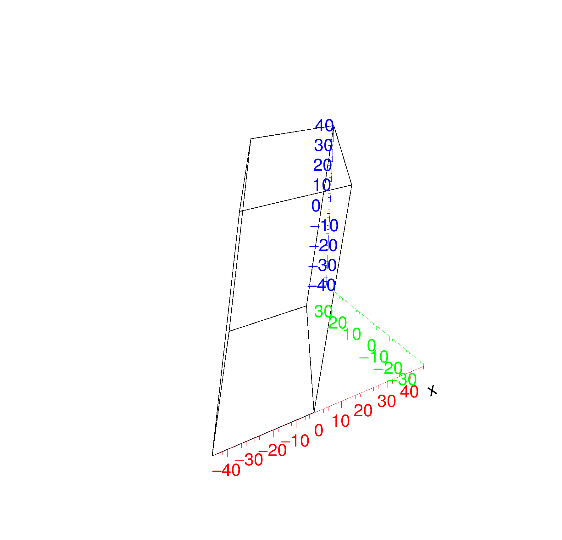 A parallelepiped is a shape having 3 pairs of parallel faces out of which one is parallel with the XY plane (Z faces). All faces are parallelograms in the general case. The Z faces have 2 edges parallel with the X-axis.