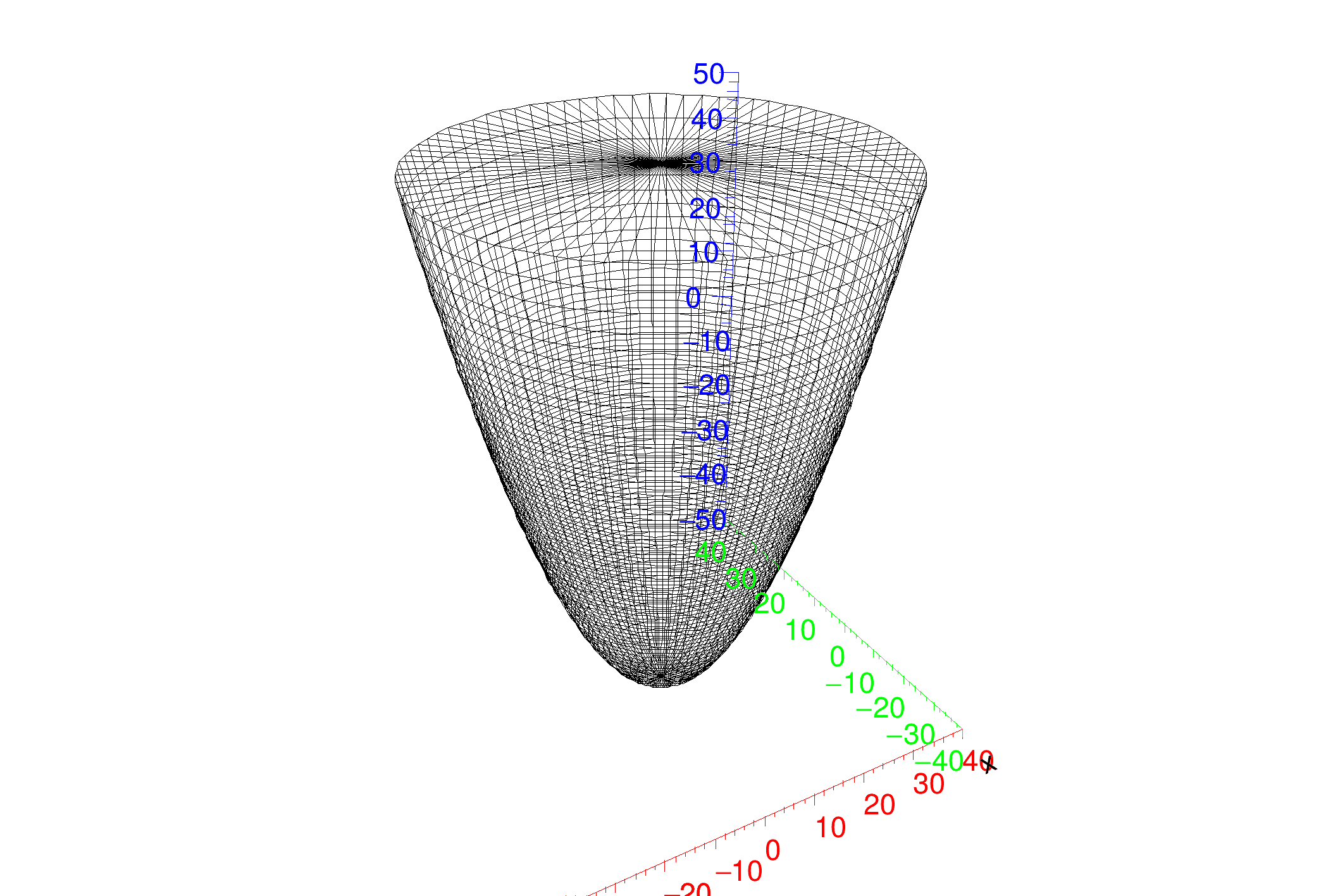 The parabola equation is taken in the form: z = a·r2 + b, where: r2 = x2 + y2. Note the missing linear term (parabola symmetric with respect to Z axis).