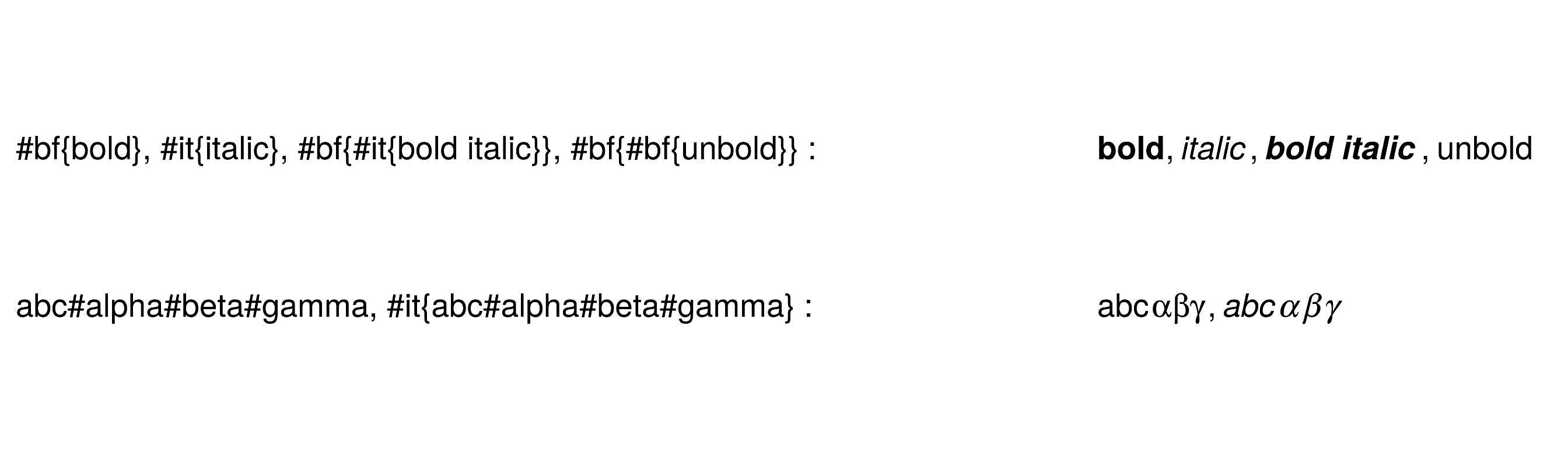 The two commands #kern and #lower enable a better control over character placement. The command #kern[(Float_t)dx]{text} moves the output string horizontally by the fraction dx of its length. Similarly, #lower[(Float_t)dy]{text} shifts the text up or down by the fraction dy of its height.