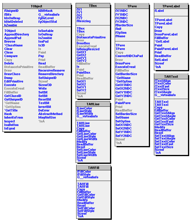 Reimplemented in TGeoTessellated, TGraphEdge, TGraphNode, TGeoIdentity, TStyle, TCurlyArc, TCurlyLine, TGedMarkerSelect, TGedPatternSelect, TGColorSelect, TGFont, TGVerticalLayout, TGHorizontalLayout, TGRowLayout, TGColumnLayout, TGMatrixLayout, TGTileLayout, TGListLayout, TGListDetailsLayout, TGTextLBEntry, TGNumberEntryField, TGNumberEntry, TGTableLayoutHints, TGTableLayout, TGTextEdit, TGTextView, TGXYLayoutHints, TGXYLayout, TRootContainer, TGHtml, TEfficiency, TExec, TMacro, TGeoArb8, TGeoTrap, TGeoGtra, TGeoBBox, TGeoBoolNode, TGeoUnion, TGeoIntersection, TGeoSubtraction, TGeoCompositeShape, TGeoCone, TGeoConeSeg, TGeoElementRN, TGeoDecayChannel, TGeoEltu, TGeoHalfSpace, TGeoHype, TGeoMaterial, TGeoMixture, TGeoTranslation, TGeoRotation, TGeoCombiTrans, TGeoHMatrix, TGeoMedium, TGeoPara, TGeoParaboloid, TGeoPatternX, TGeoPatternY, TGeoPatternZ, TGeoPatternParaX, TGeoPatternParaY, TGeoPatternParaZ, TGeoPatternTrapZ, TGeoPatternCylR, TGeoPatternCylPhi, TGeoPatternSphR, TGeoPatternSphTheta, TGeoPatternSphPhi, TGeoPcon, TGeoPgon, TGeoScaledShape, TGeoShapeAssembly, TGeoSphere, TGeoTorus, TGeoTrd1, TGeoTrd2, TGeoTube, TGeoTubeSeg, TGeoCtub, TGeoVolume, TGeoXtru, TASImage, TButton, TCanvas, TGroupButton, TPad, TPaveClass, TSlider, TSliderBox, TArc, TArrow, TBox, TCrown, TCutG, TDiamond, TEllipse, TFrame, TGaxis, TLatex, TLegend, TLine, TMarker, TMathText, TPave, TPaveLabel, TPaveStats, TPavesText, TPaveText, TPolyLine, TText, TWbox, TGraphStruct, TAxis3D, THelix, TMarker3DBox, TPolyLine3D, TPolyMarker3D, TGHorizontal3DLine, TGVertical3DLine, TGButton, TGTextButton, TGPictureButton, TGCheckButton, TGRadioButton, TGButtonGroup, TGVButtonGroup, TGHButtonGroup, TGContainer, TGCanvas, TGComboBox, TGLineStyleComboBox, TGLineWidthComboBox, TGDockableFrame, TGDoubleVSlider, TGDoubleHSlider, TGFrame, TGCompositeFrame, TGVerticalFrame, TGHorizontalFrame, TGMainFrame, TGTransientFrame, TGGroupFrame, TGFSComboBox, TGFileContainer, TGGC, TGIcon, TGLabel, TGLayoutHints, TGListBox, TGListTree, TGListView, TGLVContainer, TGMdiFrame, TGMdiMainFrame, TGMdiMenuBar, TGPopupMenu, TGMenuTitle, TGMenuBar, TGProgressBar, TGHProgressBar, TGVProgressBar, TGHScrollBar, TGVScrollBar, TGShapedFrame, TGShutterItem, TGShutter, TGVSlider, TGHSlider, TGSplitFrame, TGVSplitter, TGHSplitter, TGVFileSplitter, TGStatusBar, TGTabLayout, TGTab, TGTextEntry, TGToolBar, TGTripleVSlider, TGTripleHSlider, TRootEmbeddedCanvas, TF1, TF12, TF2, TF3, TGraph, TGraph2D, TGraph2DAsymmErrors, TGraph2DErrors, TGraphAsymmErrors, TGraphBentErrors, TGraphErrors, TGraphMultiErrors, TH1, TH1K, TH2Poly, THStack, TMultiGraph, TPolyMarker, TProfile, TProfile2D, TProfile3D, TScatter, TSpline3, TSpline5, TPaletteAxis, TChain, TTreePerfStats, TParallelCoord, TParallelCoordVar, TPie, and TPieSlice.