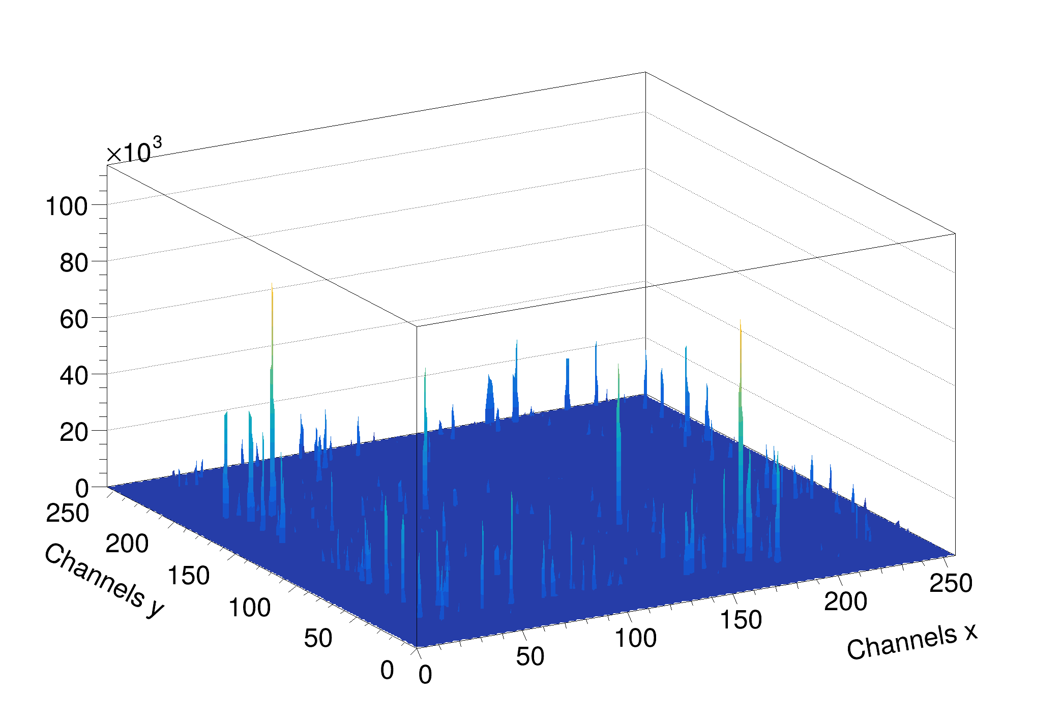 is the probability of the change of the peak position from channel i to the channel i+1. \(A_i\) is the normalization constant so that \( p_{i,i-1}+p_{i,i+1}=1\) and m is a width of smoothing window. We have extended this algorithm to two dimensions.