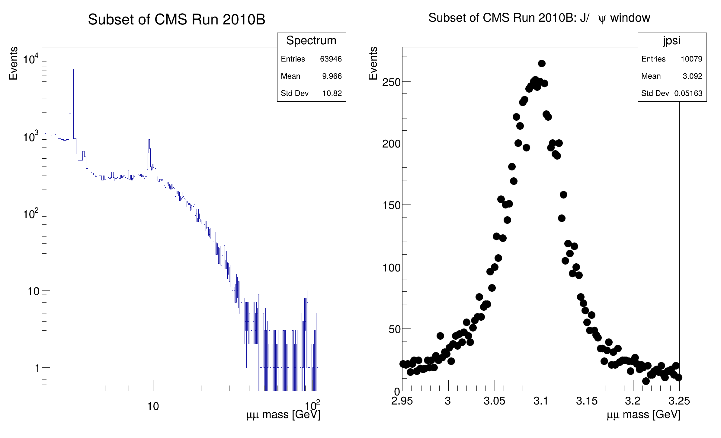 fullSpectrum = filteredEvents.Histo1D(("Spectrum", "Subset of CMS Run 2010B;#mu#mu mass [GeV];Events", 1024, 2, 110), "m")