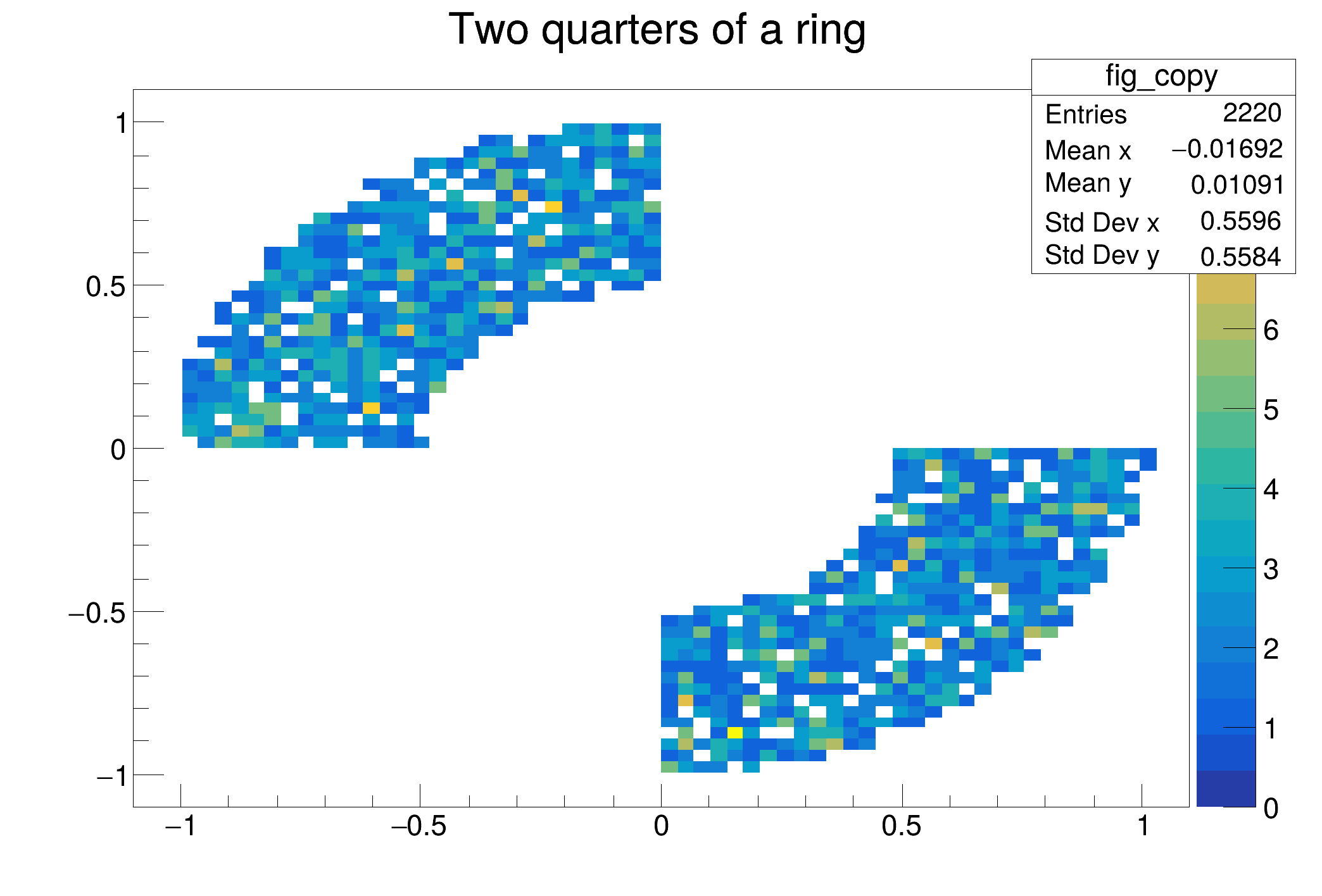 .Histo2D({"fig", "Two quarters of a ring", 64, -1.1, 1.1, 64, -1.1, 1.1}, "xFig", "yFig");