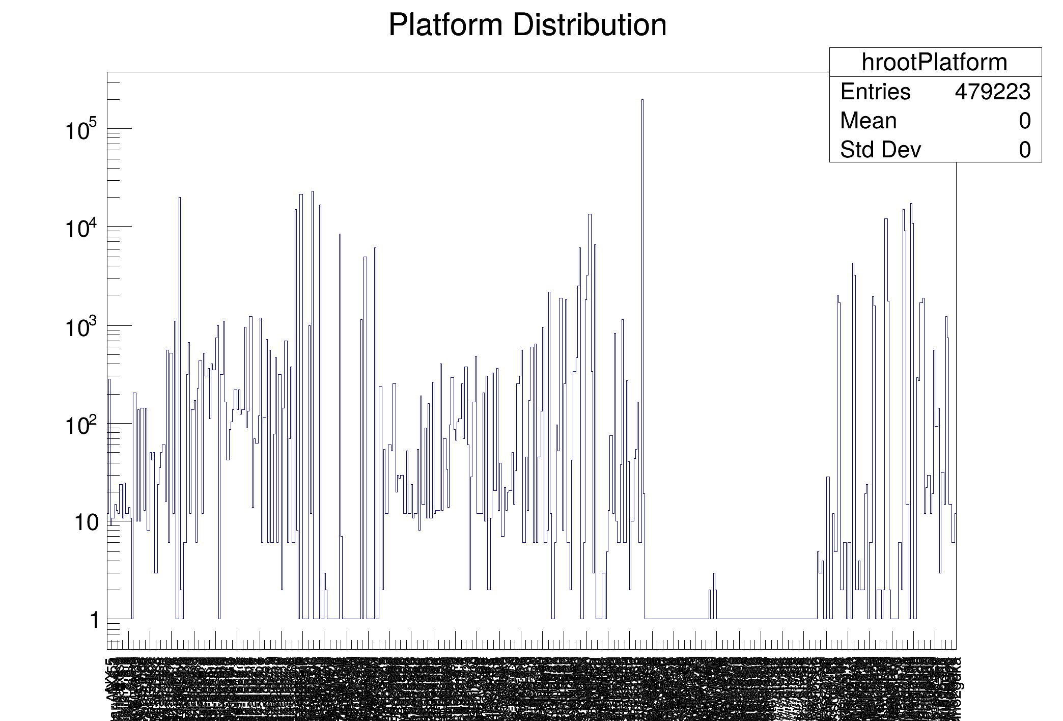 In order to display the Platform Distribution of ROOT, we choose to create two TH1F histograms: one that includes all types of platforms, other filtering and classifying them. This procedure is using a lambda expression taking as parameter the values stored in the "Platform" column from the database. At the end, the histograms are filled with their specific demand regarding the platform's type.