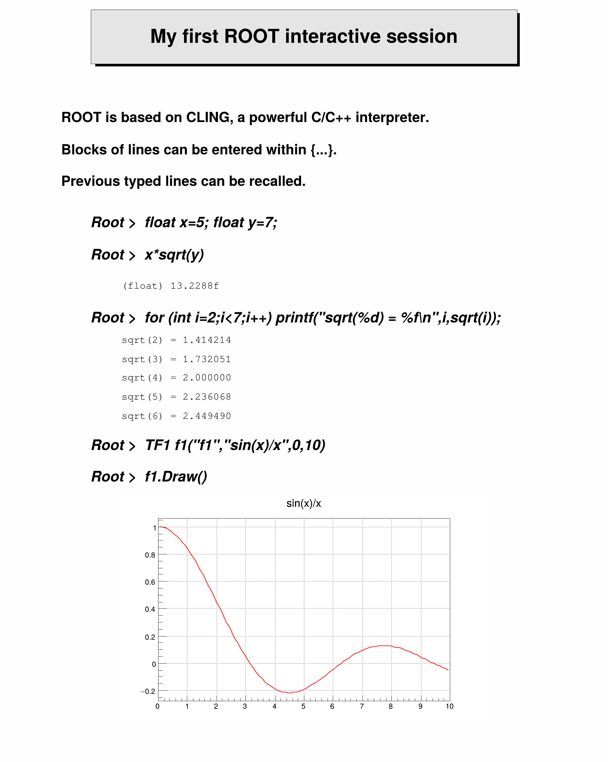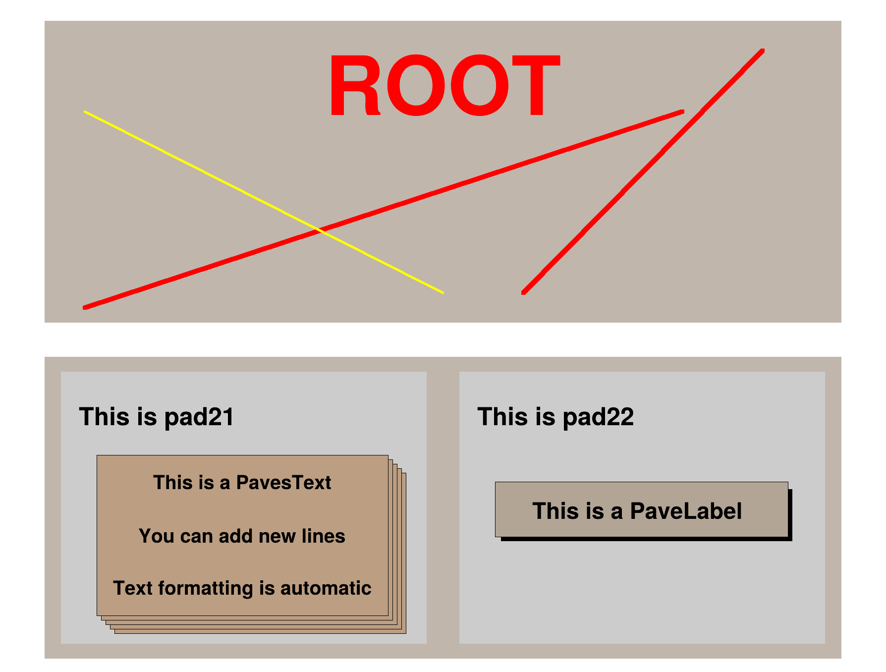 An example with basic graphics illustrating the Object Oriented User Interface of ROOT.