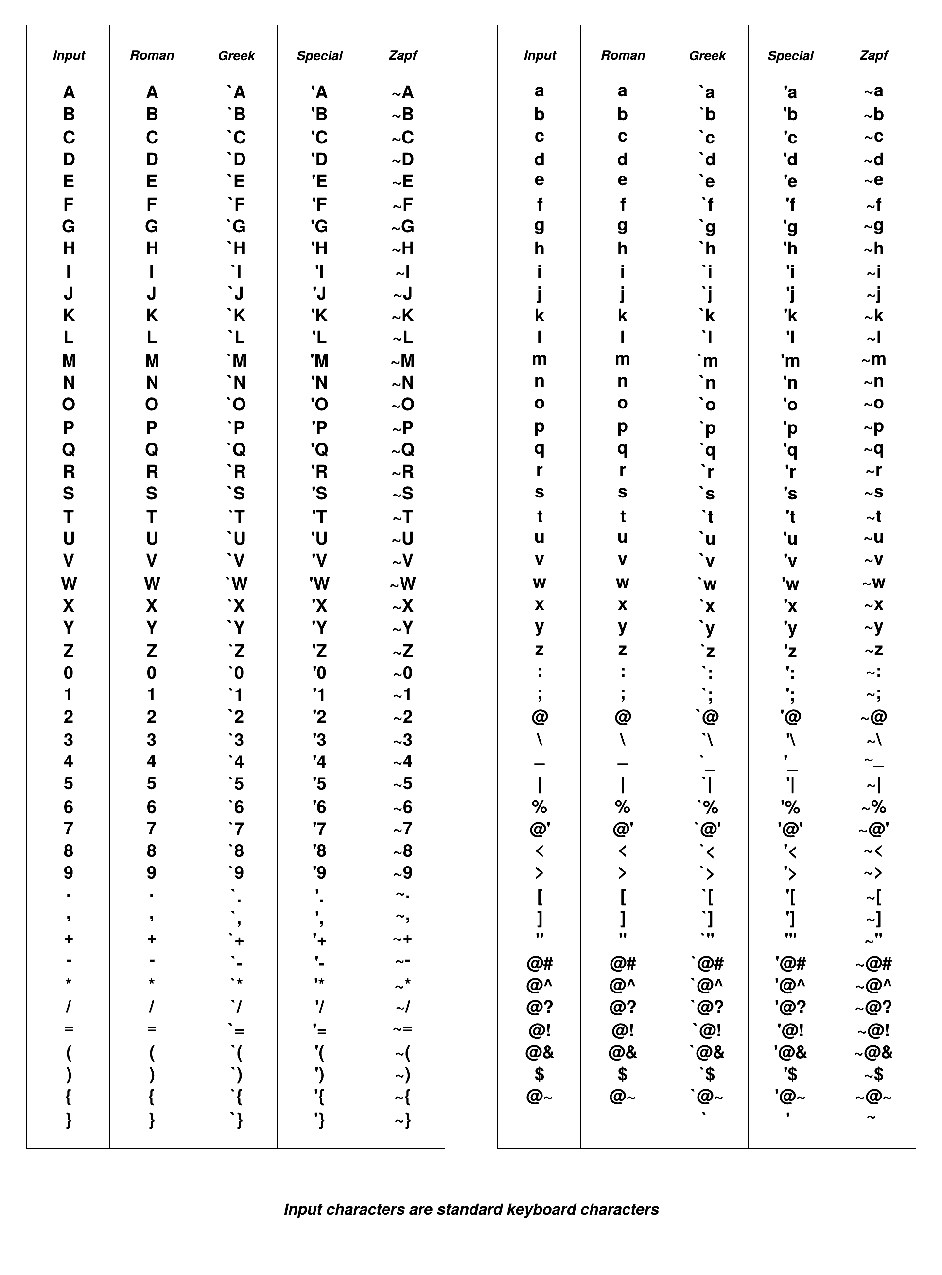 Display all possible types of ROOT/Postscript characters.