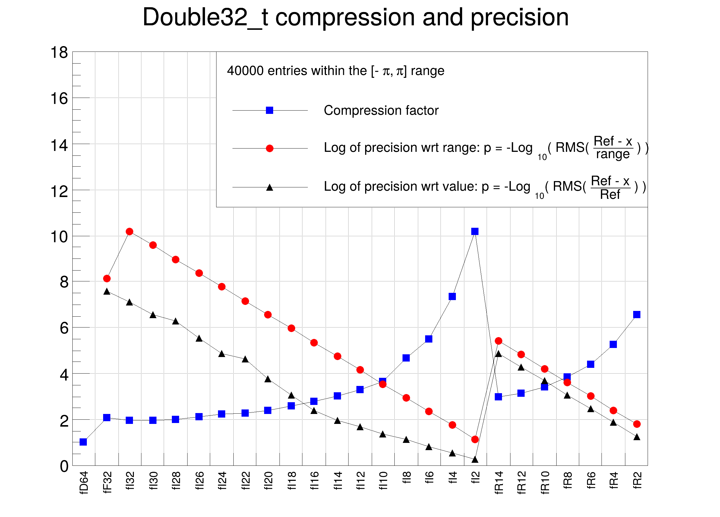Tutorial illustrating use and precision of the Double32_t data type You should run this tutorial with ACLIC: a dictionary will be automatically created.