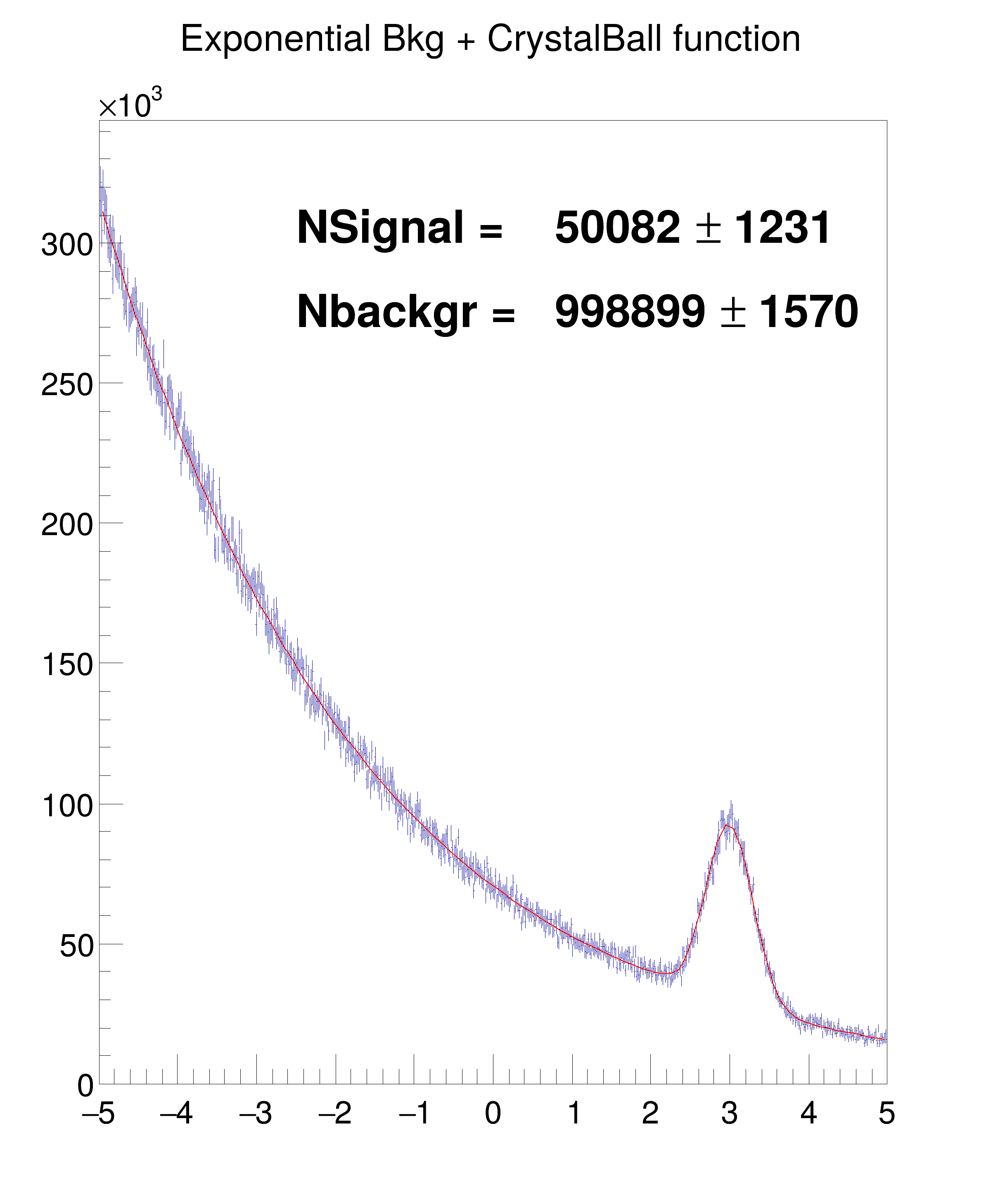Tutorial for normalized sum of two functions Here: a background exponential and a crystalball function Parameters can be set: