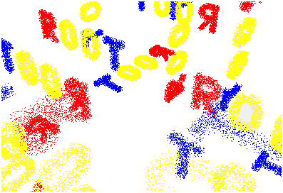 TGeoShape *clip1, *clip2, ... One might switch between several clipping shapes. Note that these shapes are considered defined in the current MARS. Composite shapes may be used.gGeoManager->SetClippingShape(clip1); One can activate or deactivate clipping at any time: gGeoManager->SetClipping(flag);gGeoManager->GetTopVolume()->Raytrace();One can redo the steps 2-3 as many times as needed. Let us look how the rootgeom.C example looks clipped with a tube.
