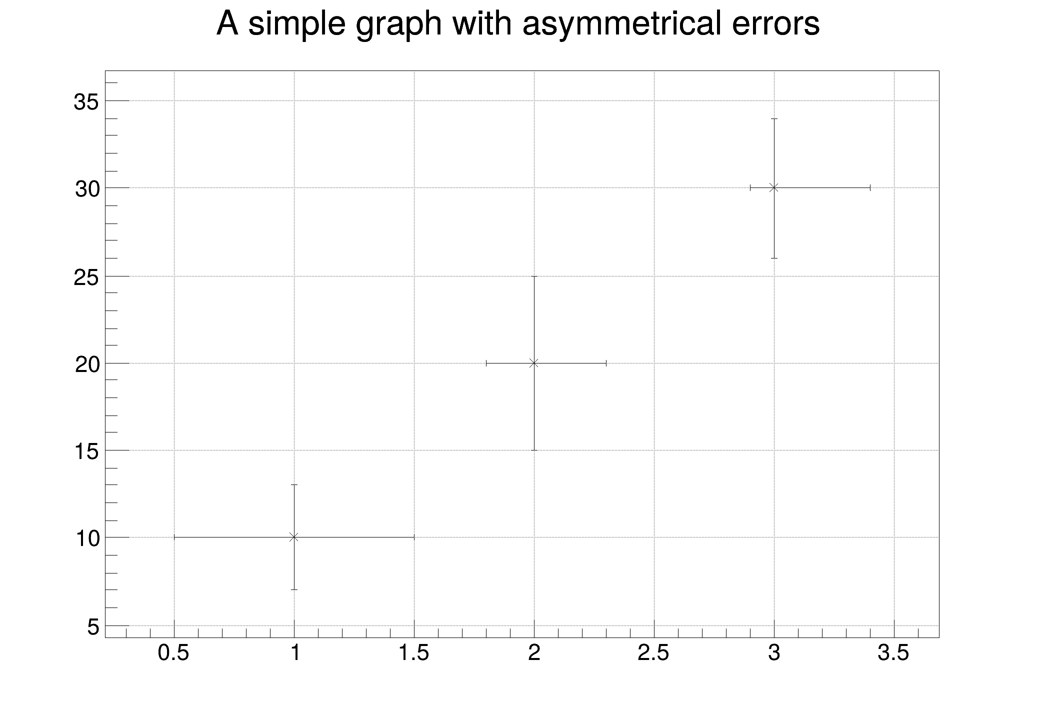 | gr004_errors_asym.C | gr004_errors_asym.py | Create and draw a graph with asymmetric x & y errors. |