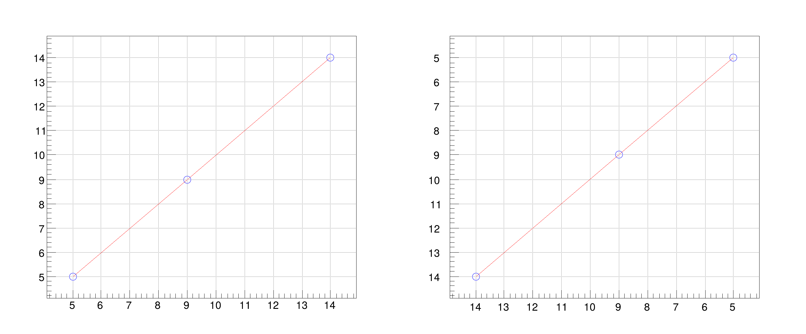 This example tests all the various cases of reverse graphs obtained with Draw("a pl rx ry "), where rx and ry refer to the reversing of x and y axis. | |
