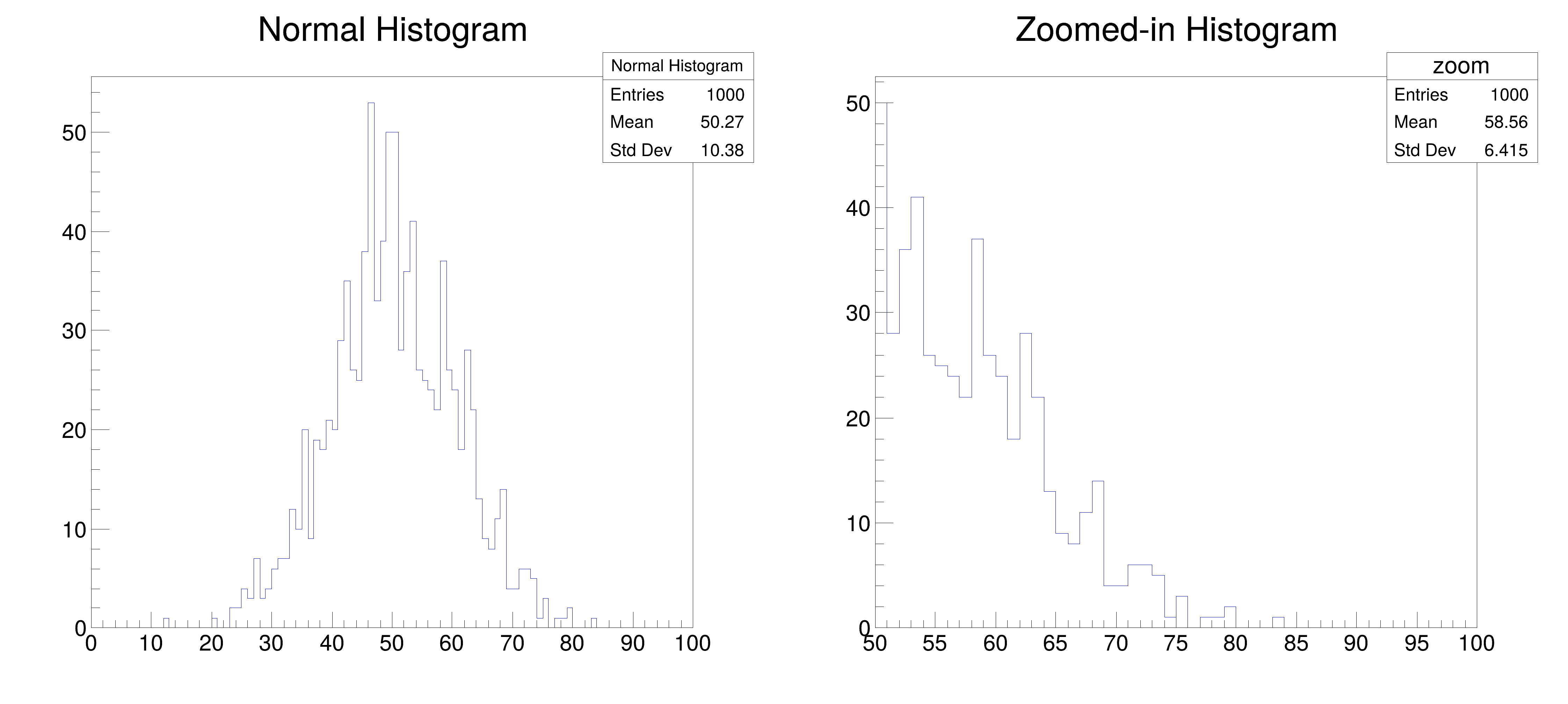 TH1D histogram("histogram", "My first ROOT histogram", nBins, rangeMin, rangeMax);