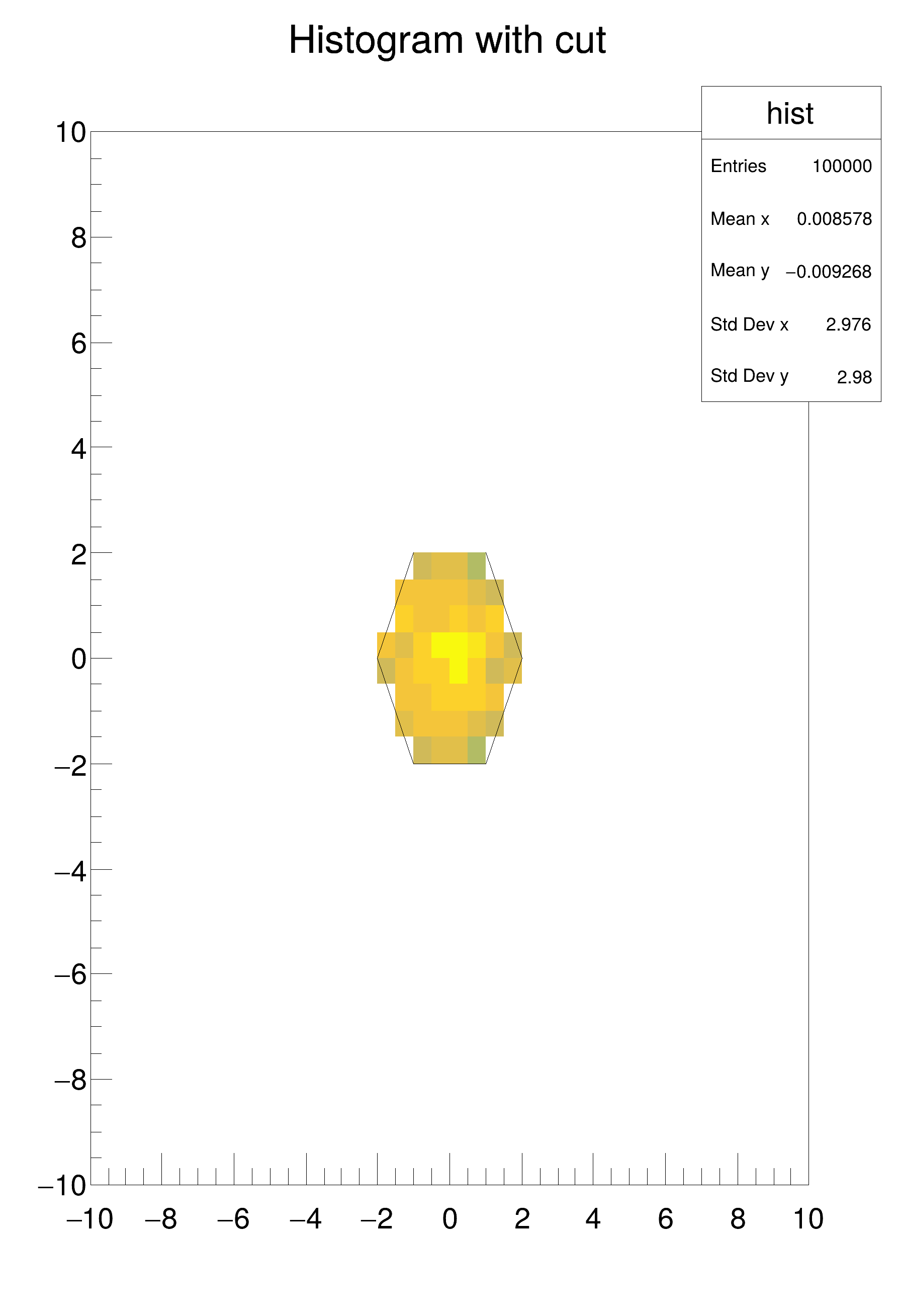This example demonstrates how to display a 2D histogram and use TCutG object to select bins for drawing.