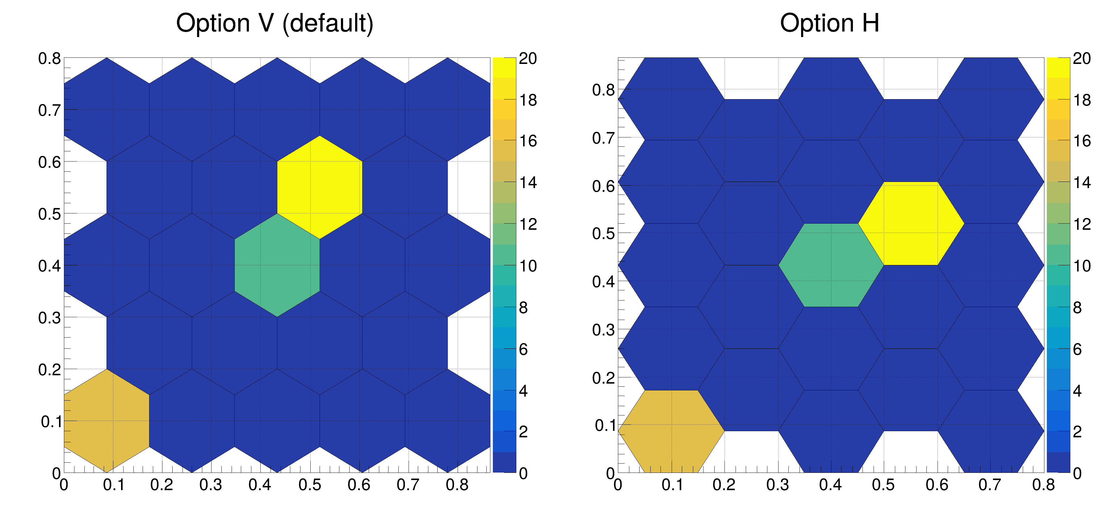 This tutorial illustrates how to create an histogram with hexagonal bins (TH2Poly).