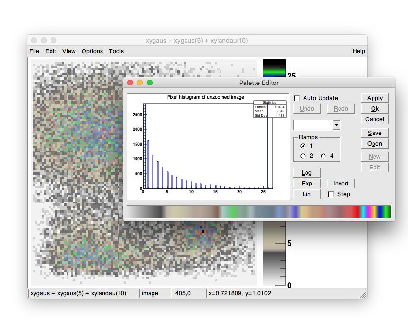 "xygaus + xygaus(5) + xylandau(10)", 100, -4, 4, 100, -4, 4);