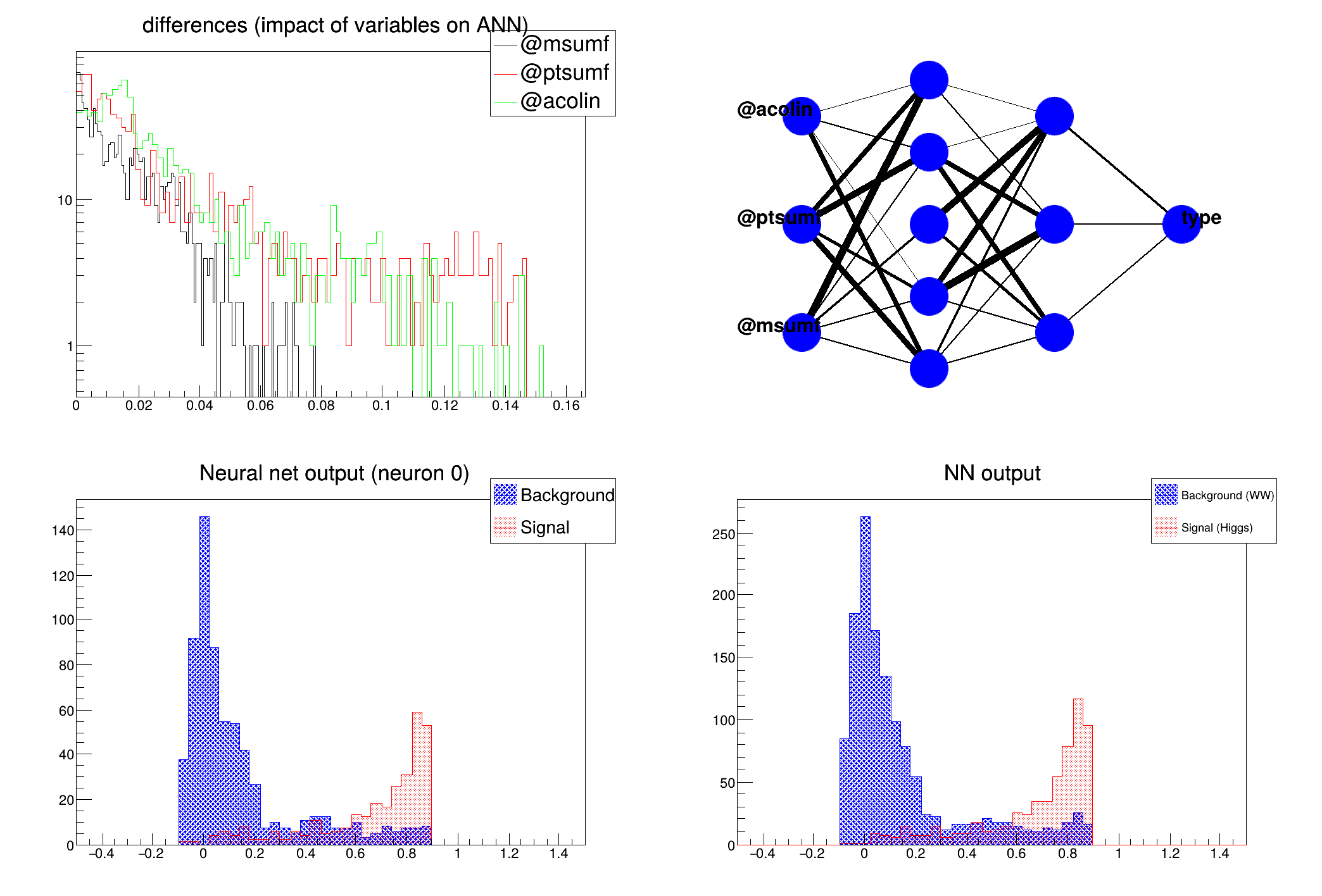 Example of a Multi Layer Perceptron For a LEP search for invisible Higgs boson, a neural network was used to separate the signal from the background passing some selection cuts.