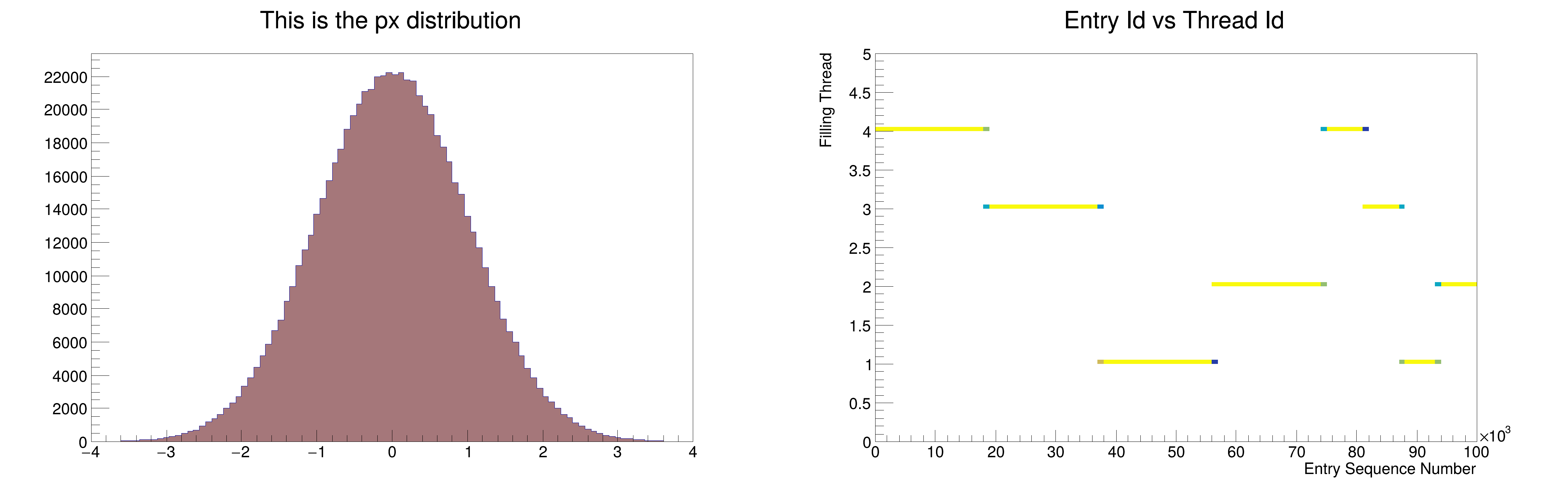 TH2F hFillSequence("", "Entry Id vs Thread Id;Entry Sequence Number;Filling Thread", 100, 0, nEvents, 100, 0,