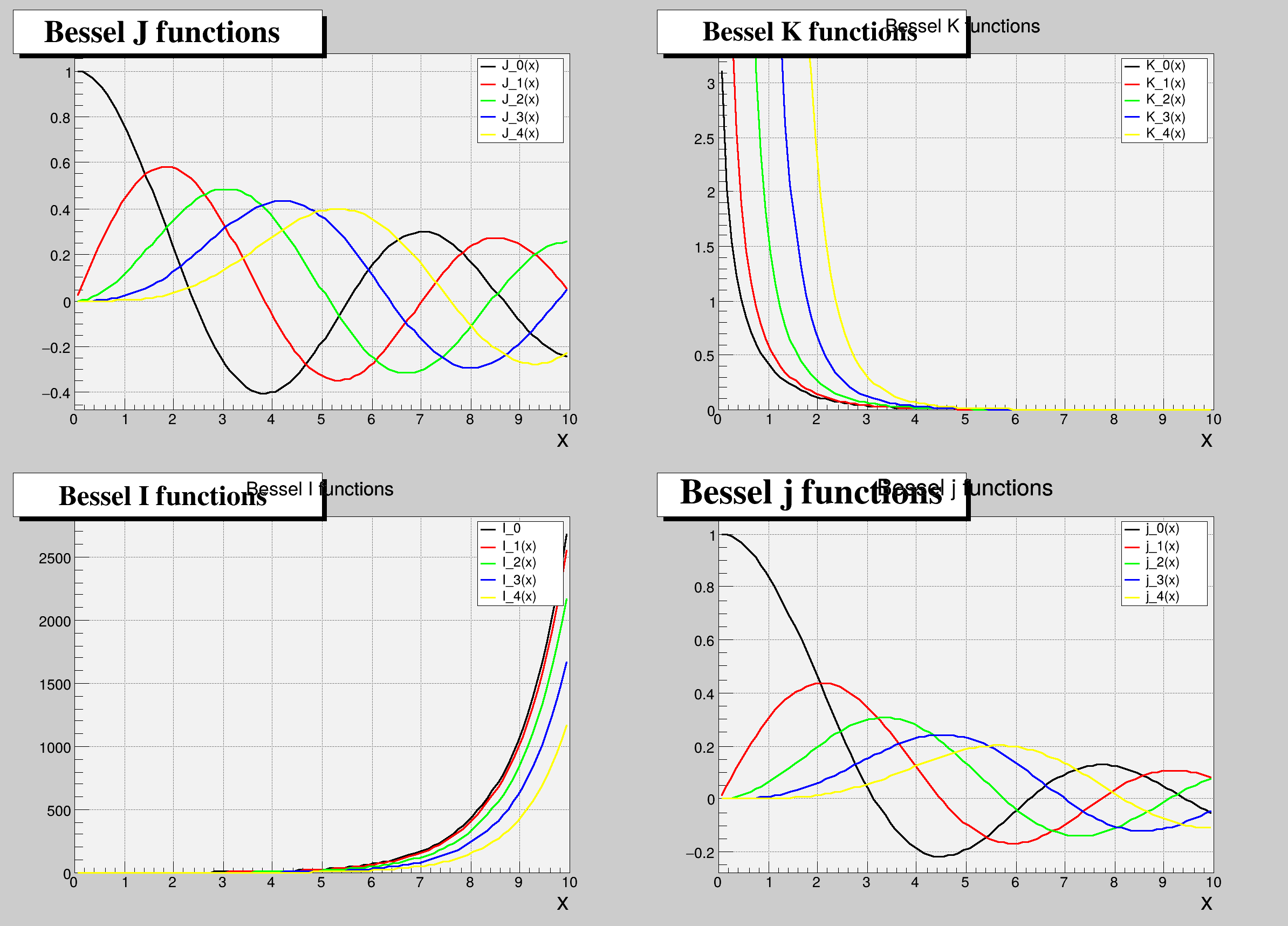 Show the different kinds of Bessel functions available in ROOT To execute the macro type in: