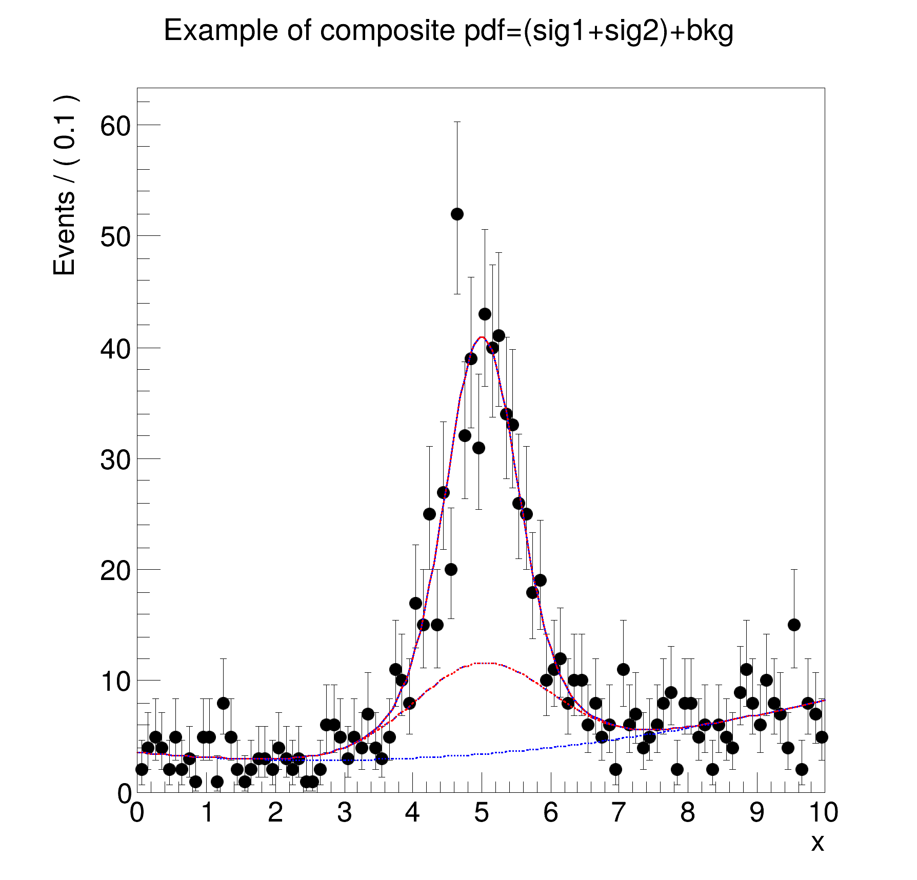 [#1] INFO:Plotting -- RooAbsPdf::plotOn(model) directly selected PDF components: (bkg,sig2)