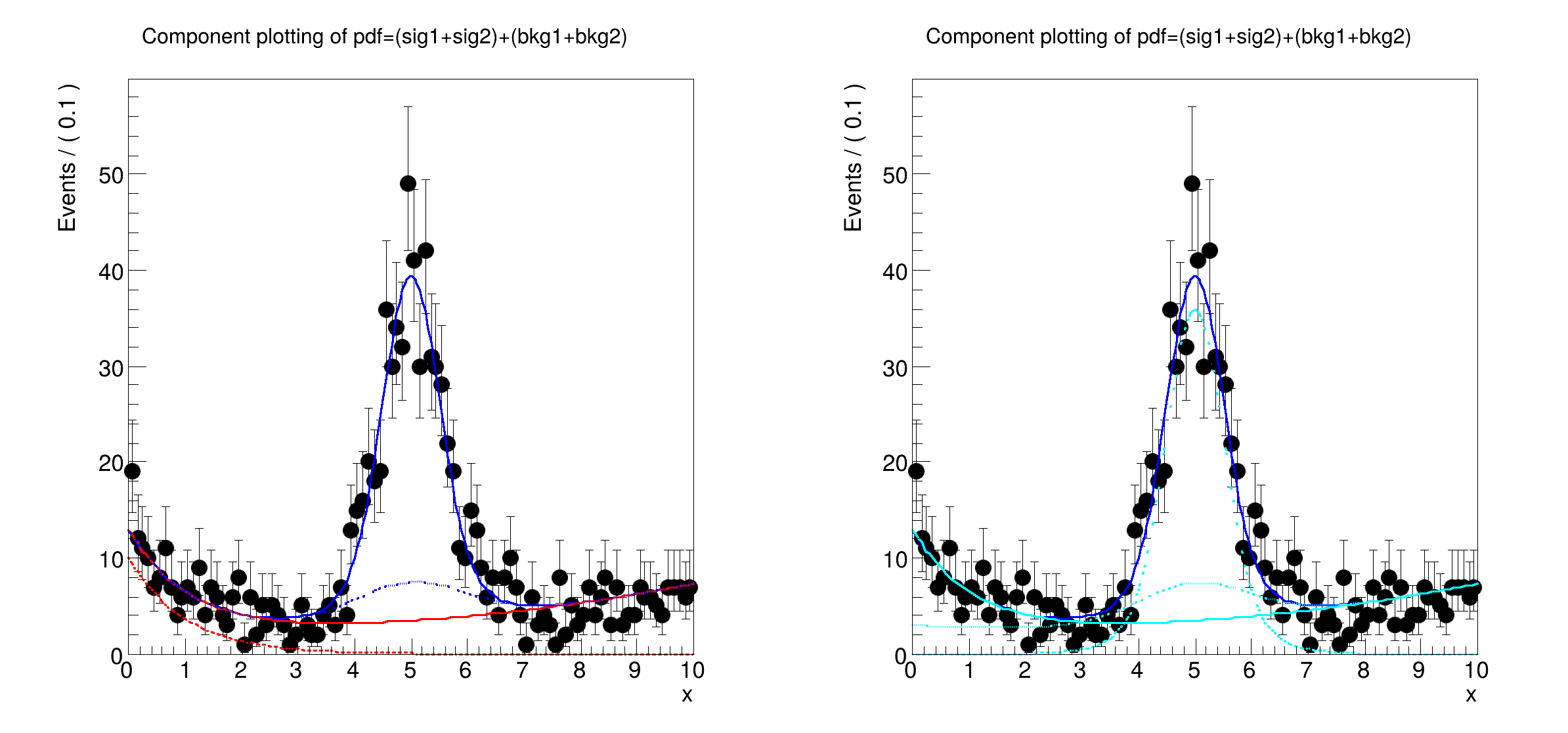 [#1] INFO:Plotting -- RooAbsPdf::plotOn(model) indirectly selected PDF components: (bkg1,bkg2)