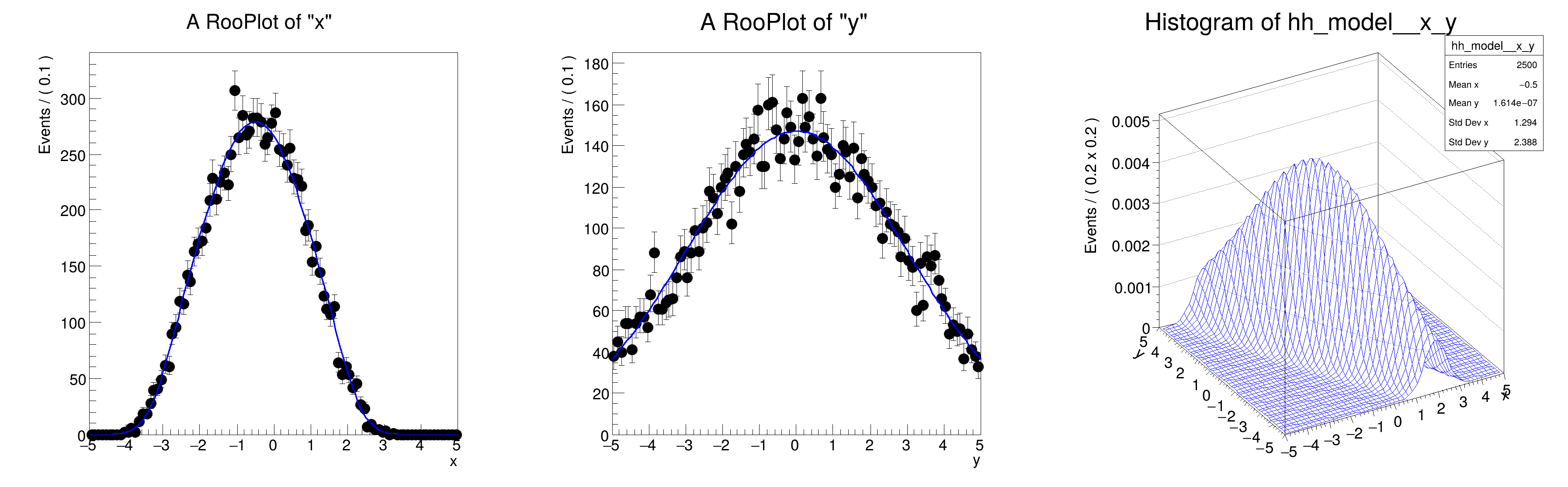 [#1] INFO:Plotting -- RooAbsReal::plotOn(model) plot on x integrates over variables (y)