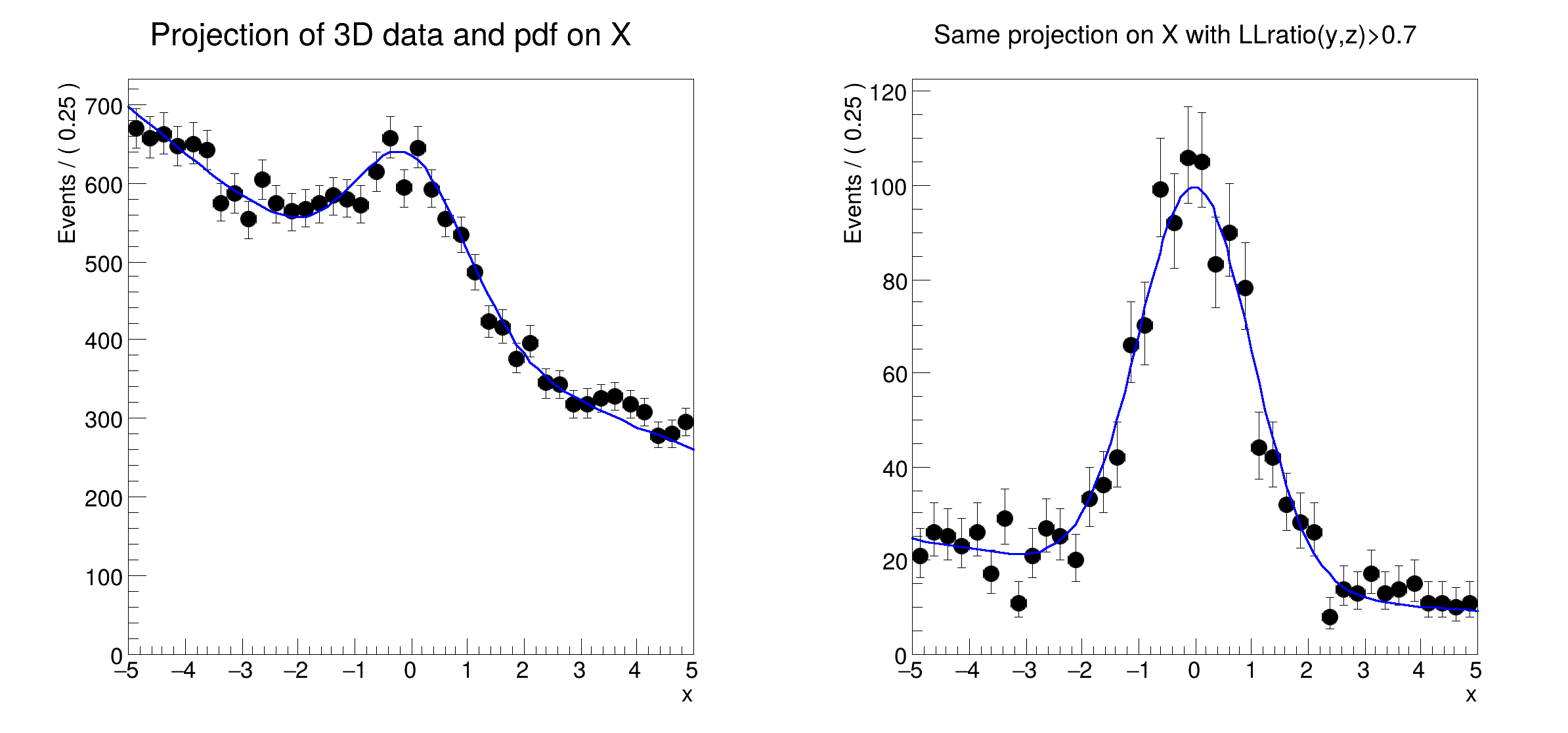 [#1] INFO:Plotting -- RooAbsReal::plotOn(model) plot on x integrates over variables (y,z)