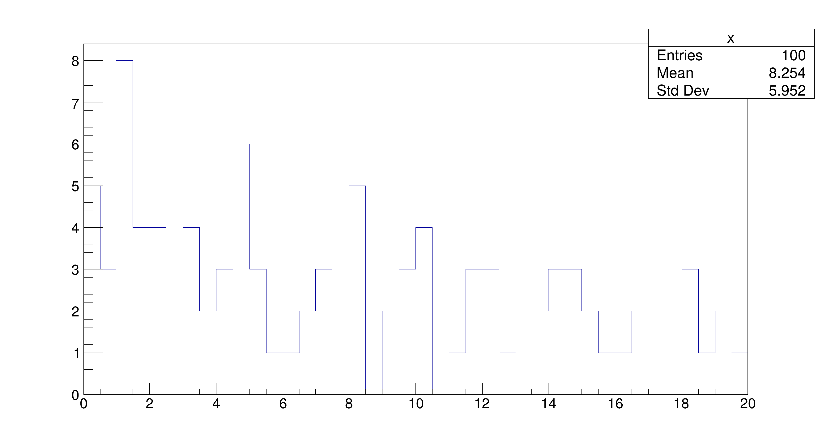 entries = 100, mean = 8.2544, stddev = 5.95187