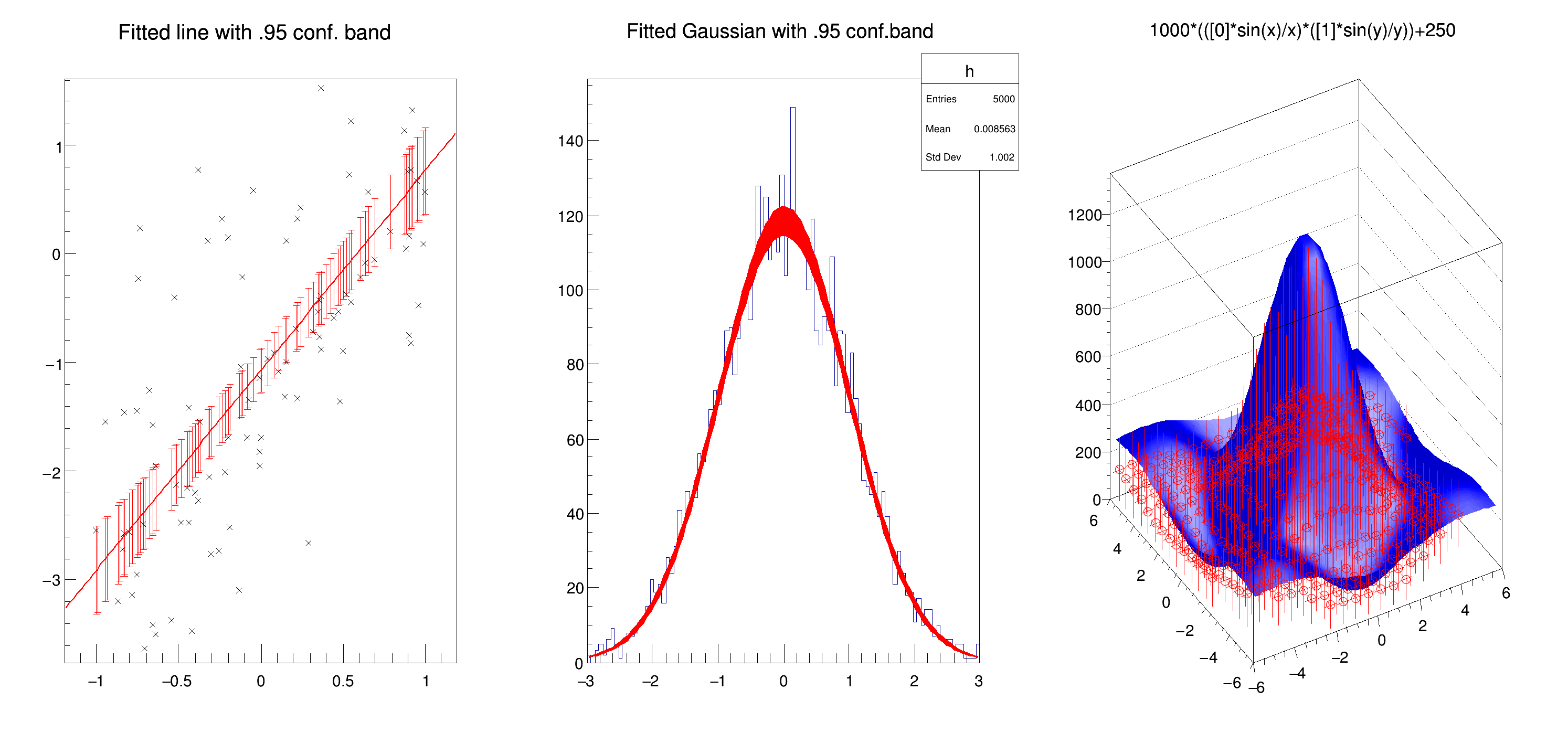 "Fitted Gaussian with .95 conf.band", 100, -3, 3);