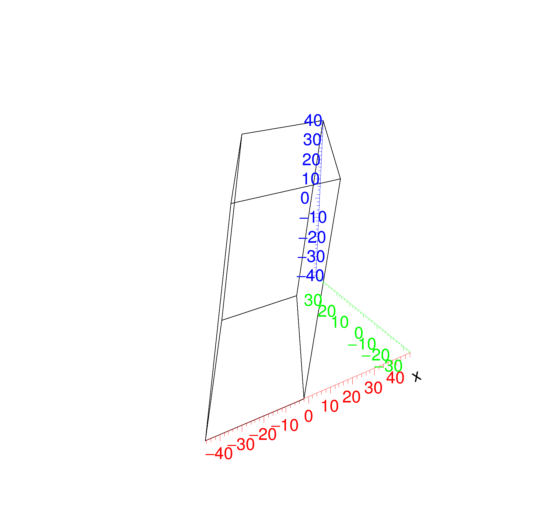 half-lengths of the projections of the edges on X, Y and Z. The lower Z face is positioned at -dZ