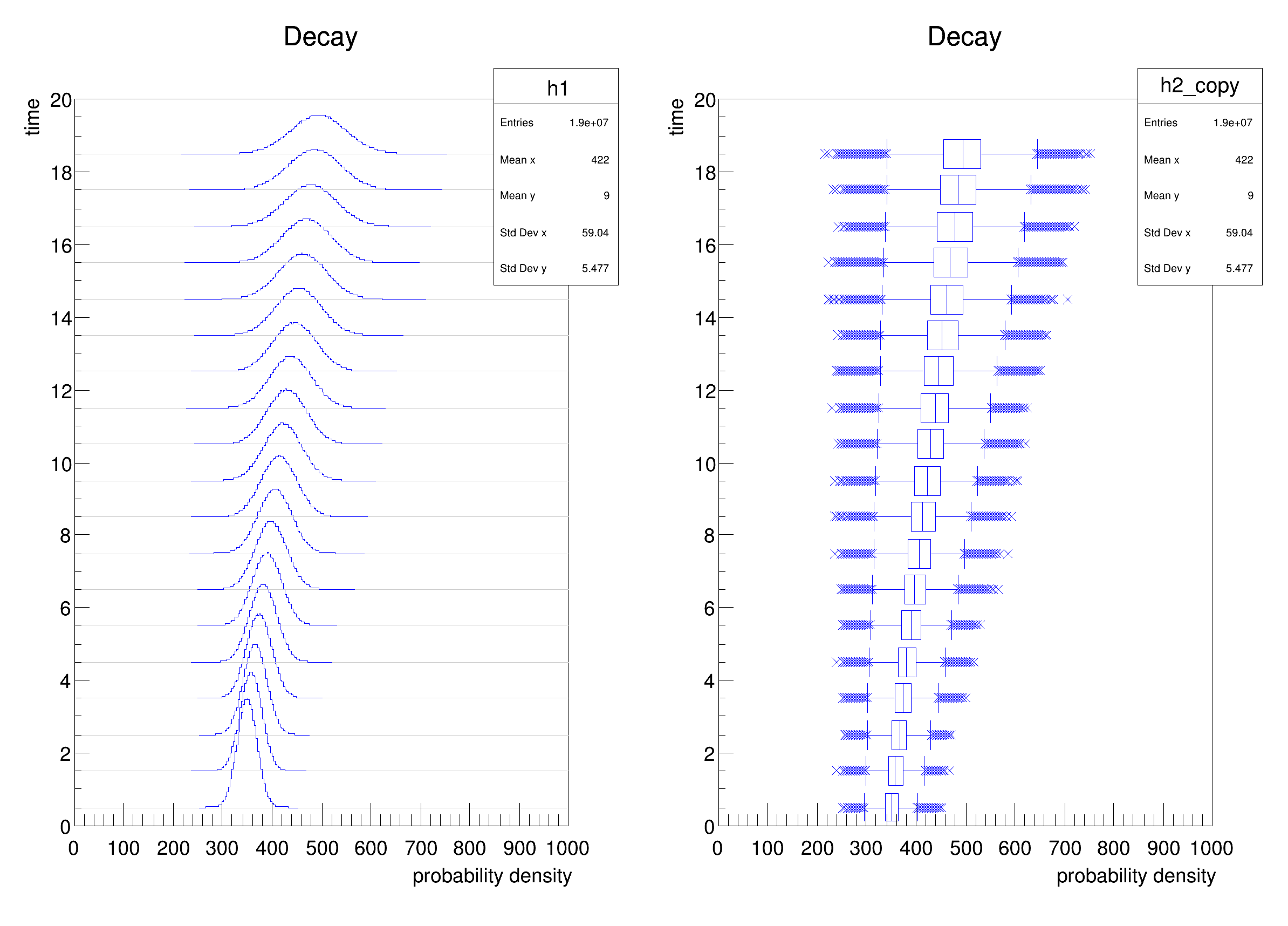 auto h1 = new TH2I("h1","Decay",1000,0,1000,20,0,20);