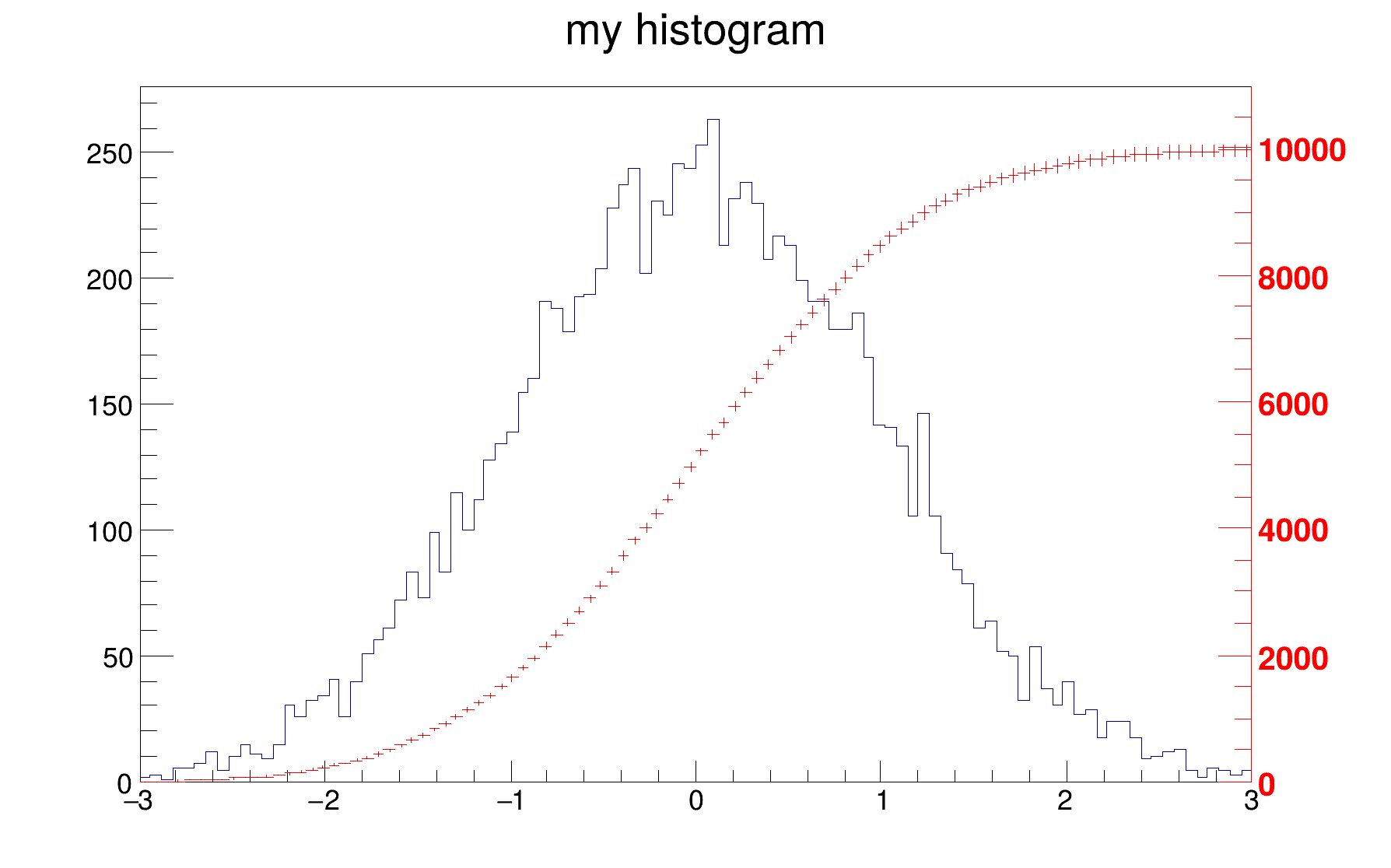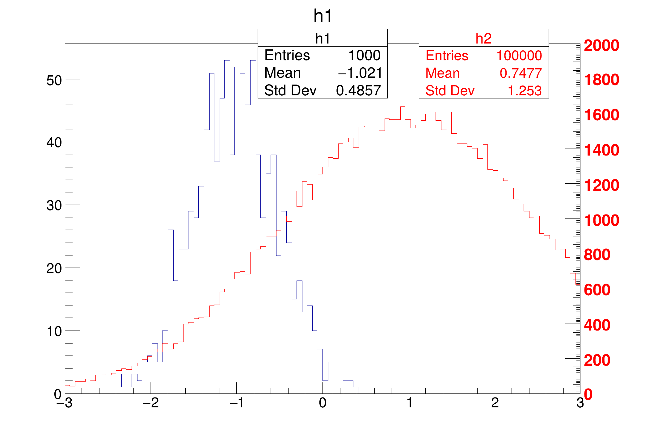 Example of macro illustrating how to superimpose two histograms with different scales in the "same" pad. | |