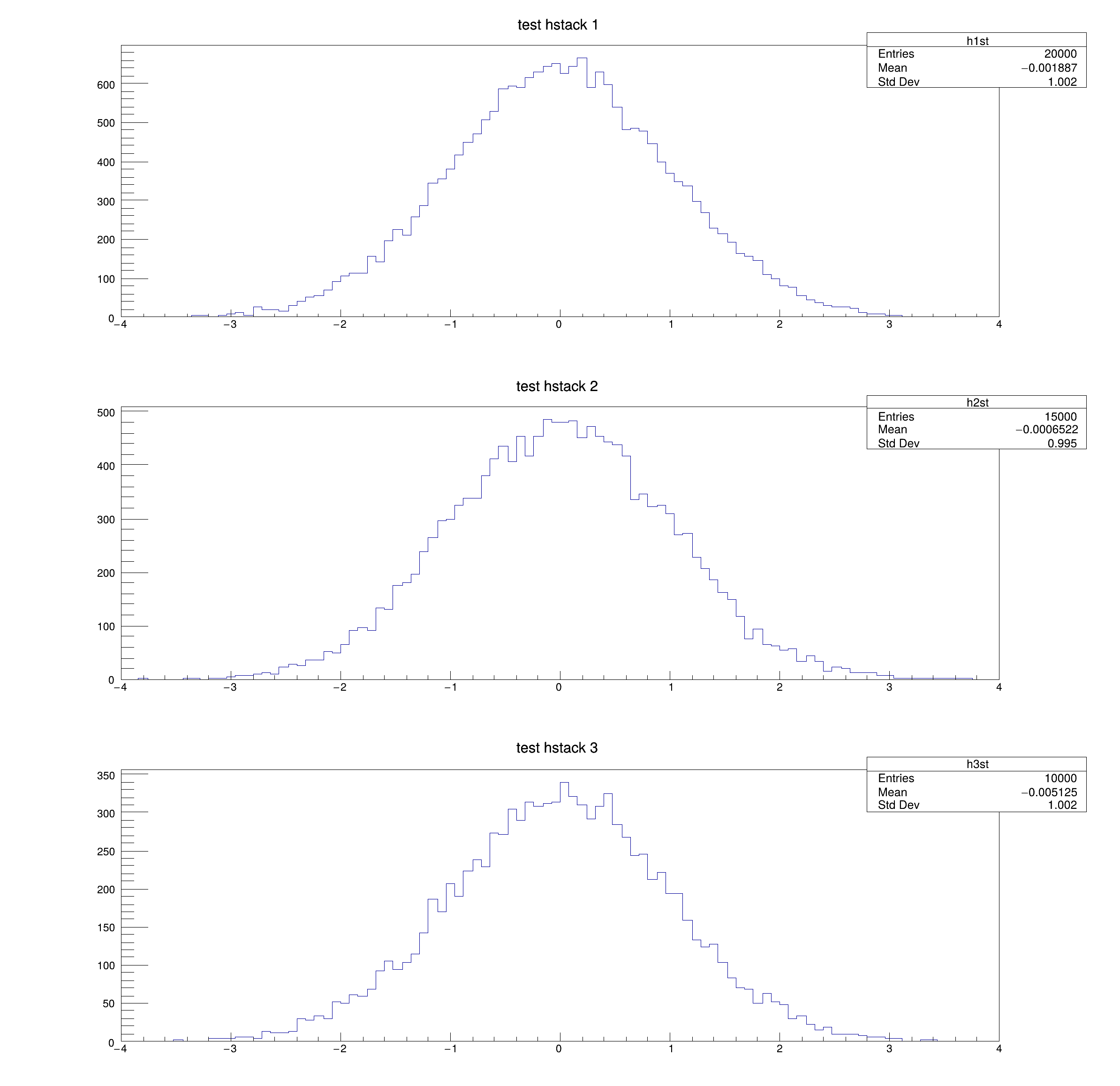 Palette coloring for histograms' stack is activated thanks to the options PFC (Palette Fill Color), PLC (Palette Line Color) and AMC (Palette Marker Color). | |