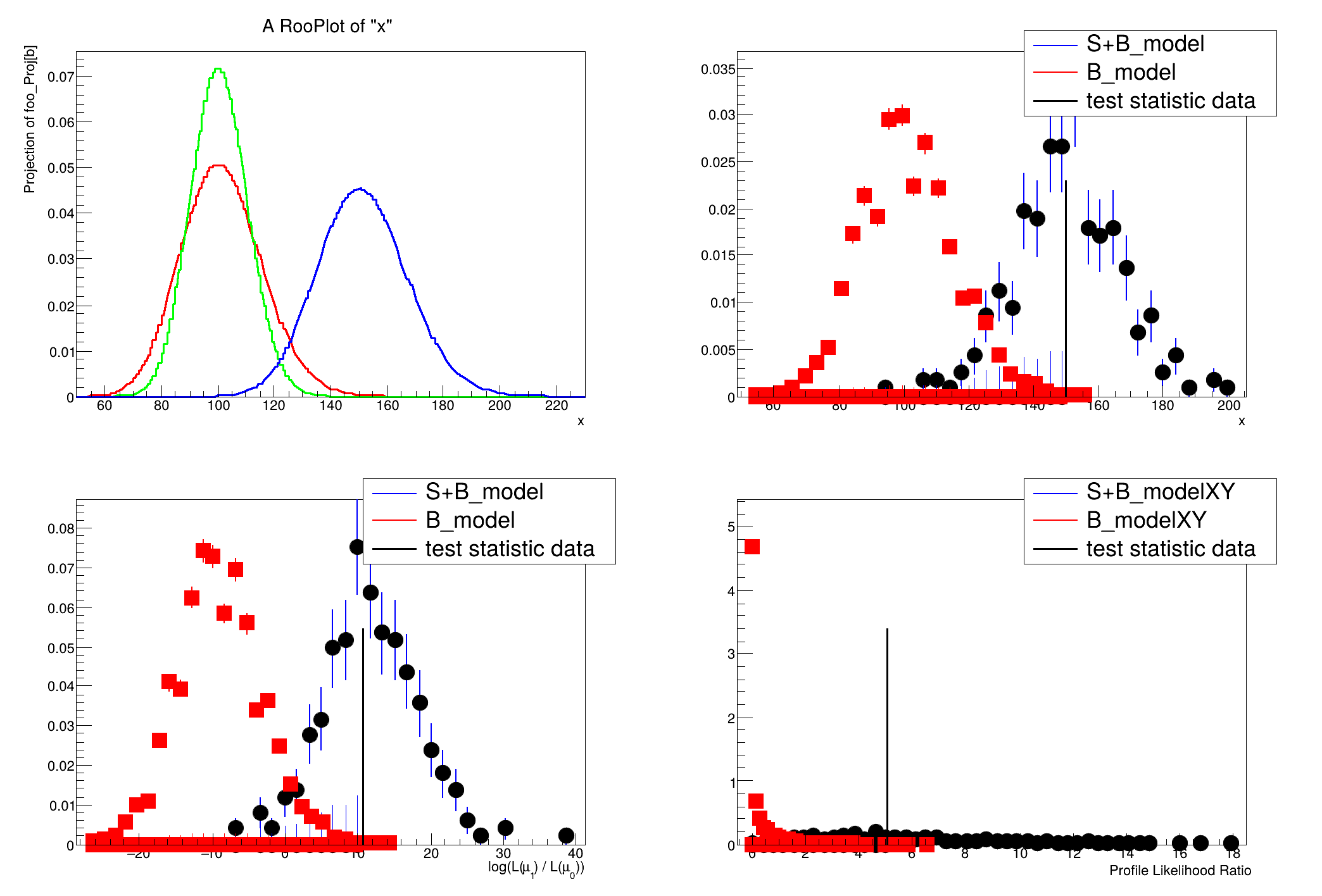 This tutorial is related to the FourBin.C tutorial in the modeling, but focuses on hypothesis testing instead of interval estimation.