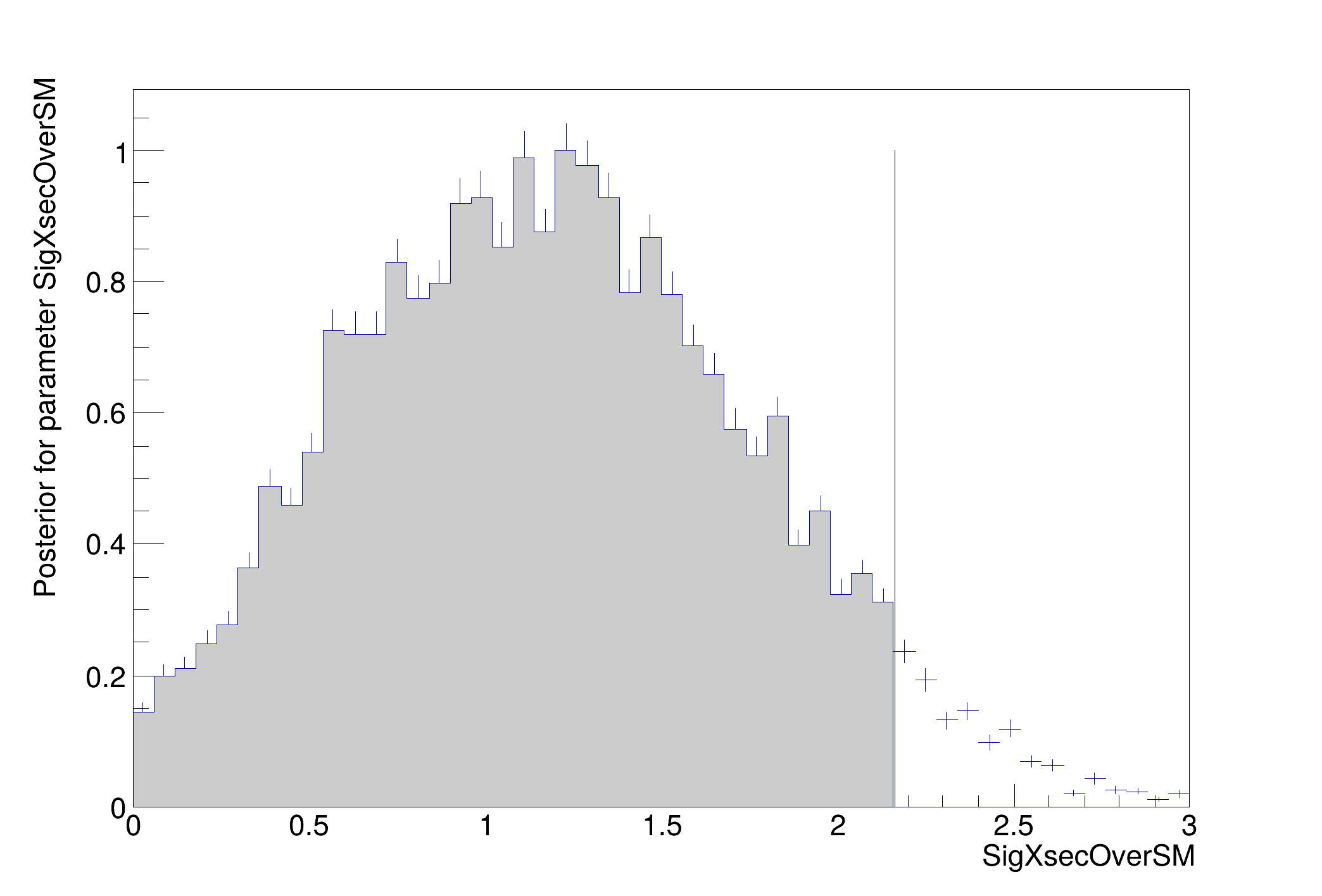 >>>> RESULT : 95% interval on SigXsecOverSM is : [0, 2.16421]