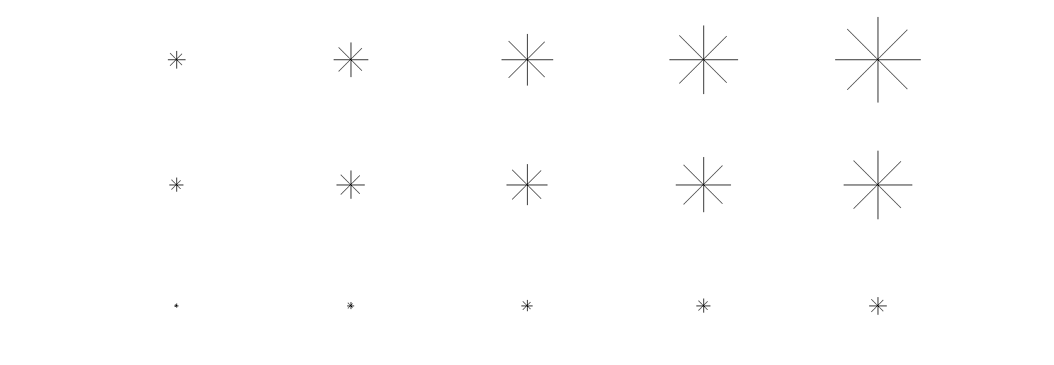 Note that the marker styles number 1 6 and 7 (the dots), cannot be scaled. They are meant to be very fast to draw and are always drawn with the same number of pixels; therefore this method does not apply on them.