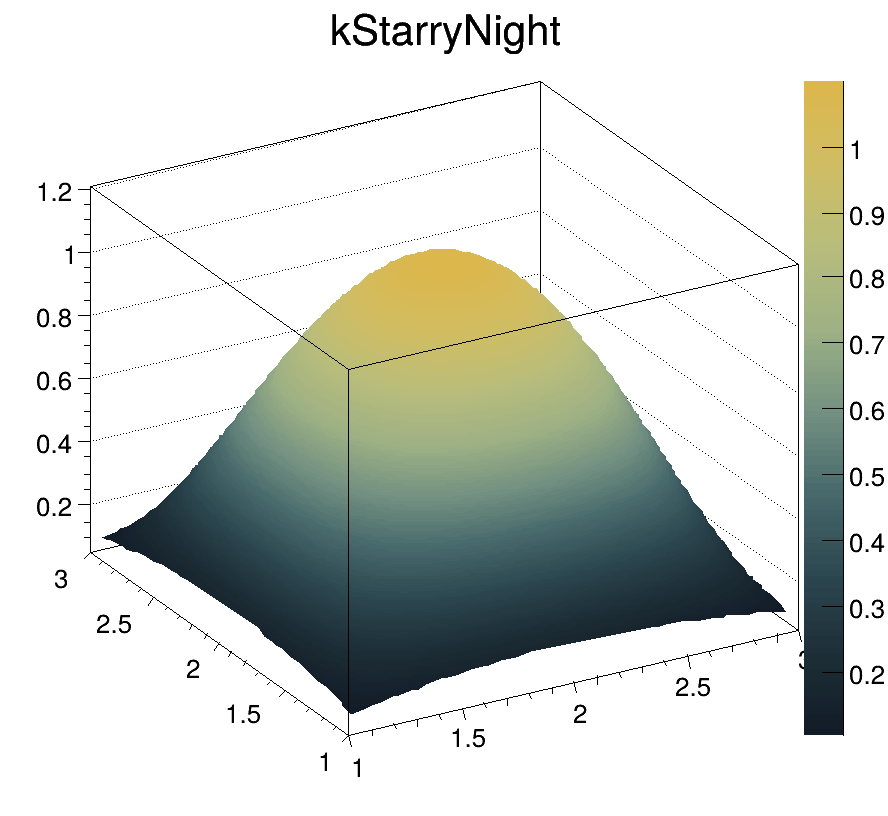 To define more a complex palette with a continuous gradient of color, one should use the static function TColor::CreateGradientColorTable(). The following example demonstrates how to proceed: