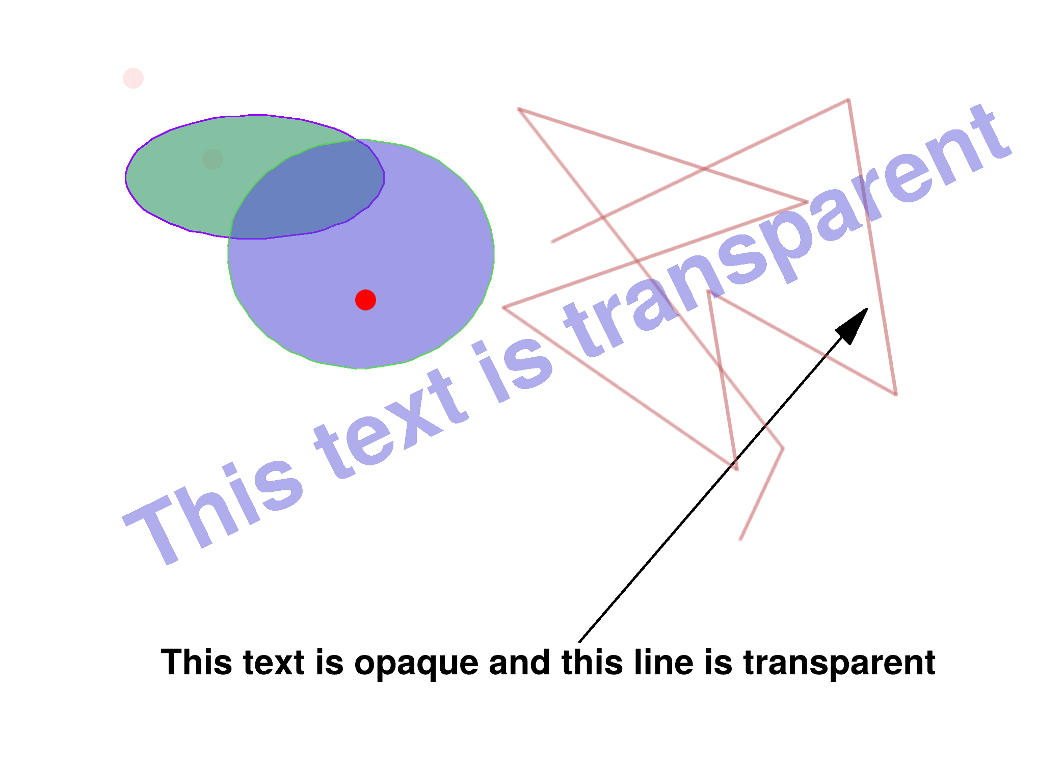 To make a graphics object transparent it is enough to set its color to a transparent one. The color transparency is defined via its alpha component. The alpha value varies from 0. (fully transparent) to 1. (fully opaque). To set the alpha value of an existing color it is enough to do: