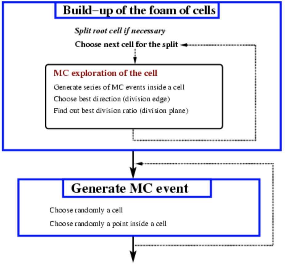 TFoam is the main class of the multi-dimensional general purpose Monte Carlo event generator (integrator) FOAM.
