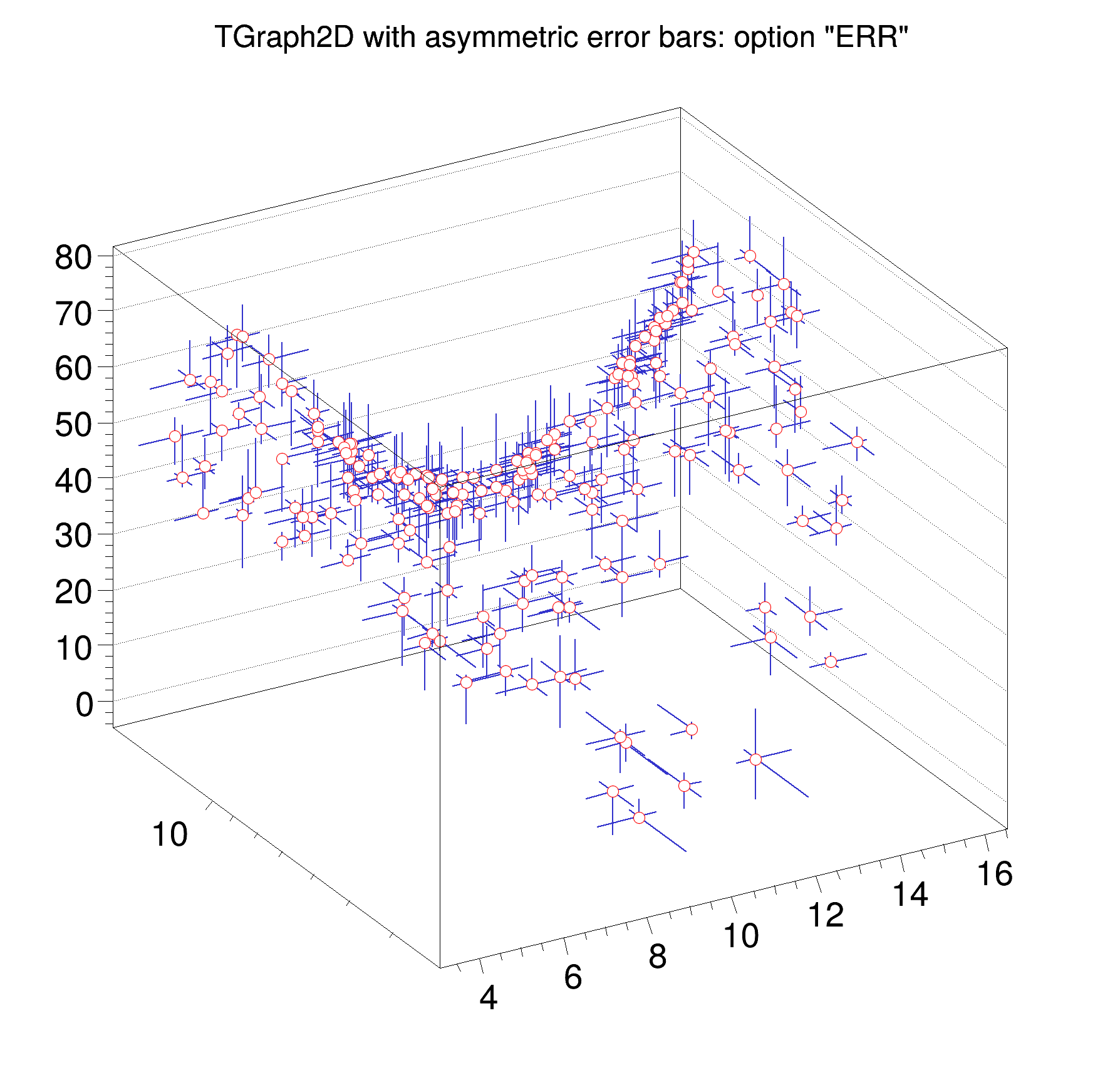 A TGraph2DAsymmErrors is a TGraph2D with asymmetric errors. It behaves like a TGraph2D and has the same drawing options.