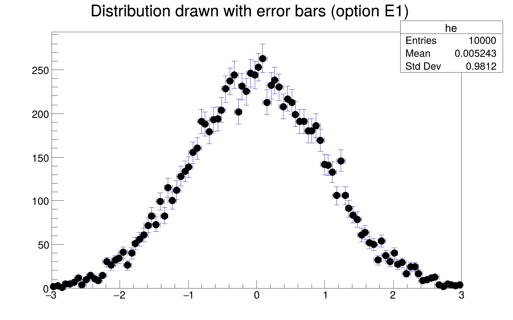 root [1] h->Draw("E"); // Draw "h" using error bars