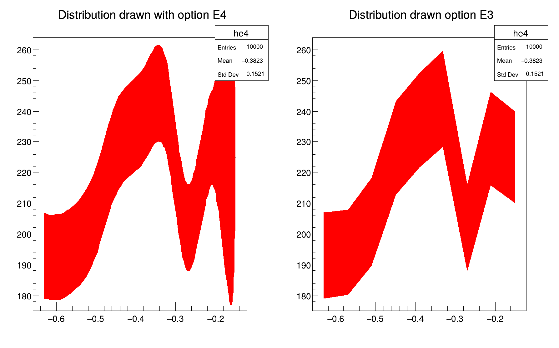 | "LF2" | Draw histogram like with option "L" but with a fill area. Note that "L" draws also a fill area if the hist fill color is set but the fill area corresponds to the histogram contour. |