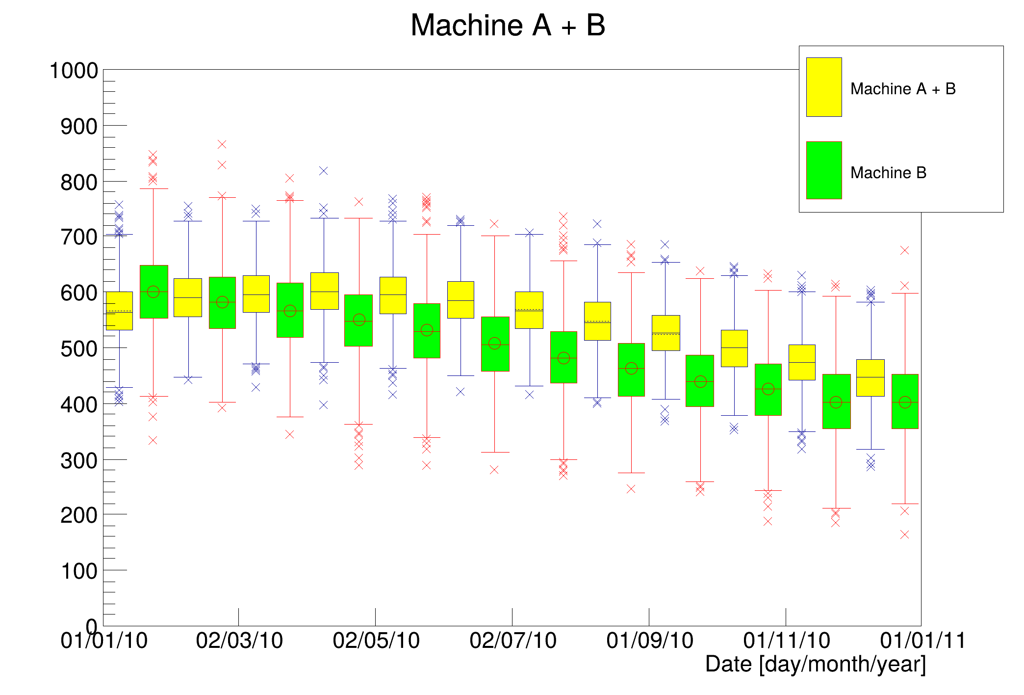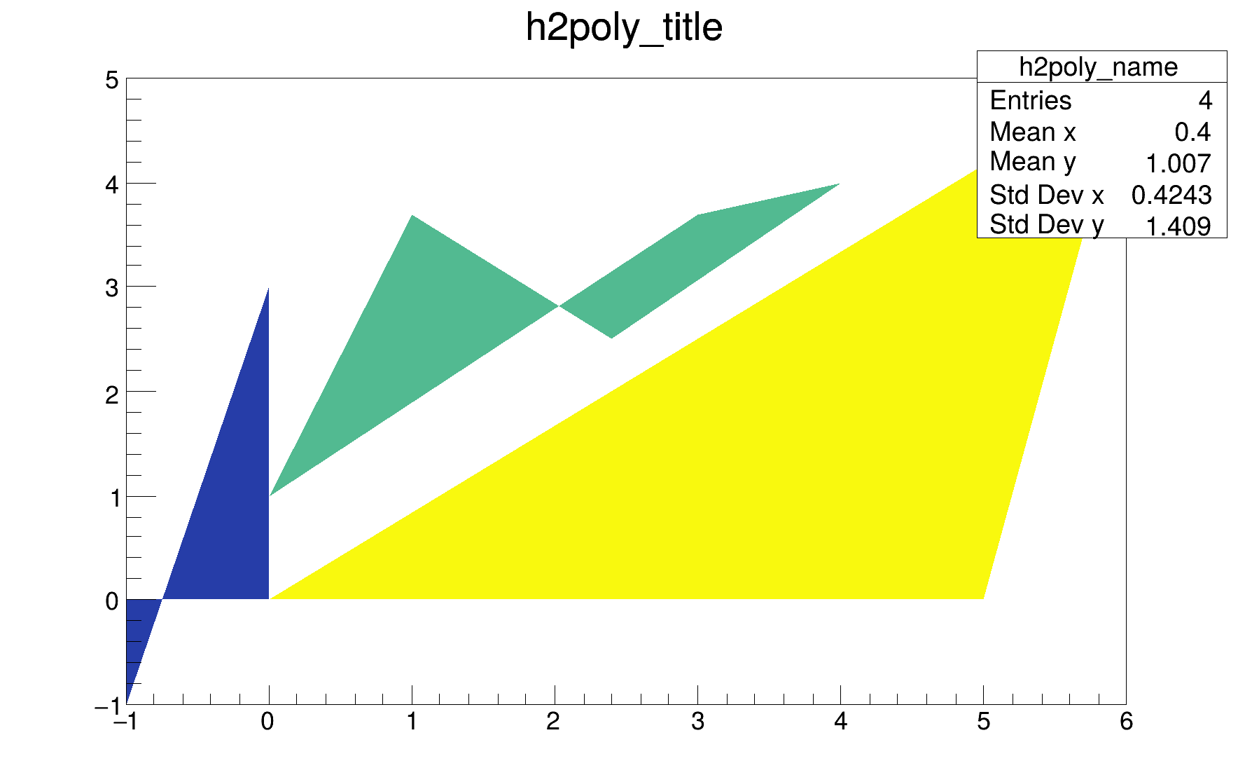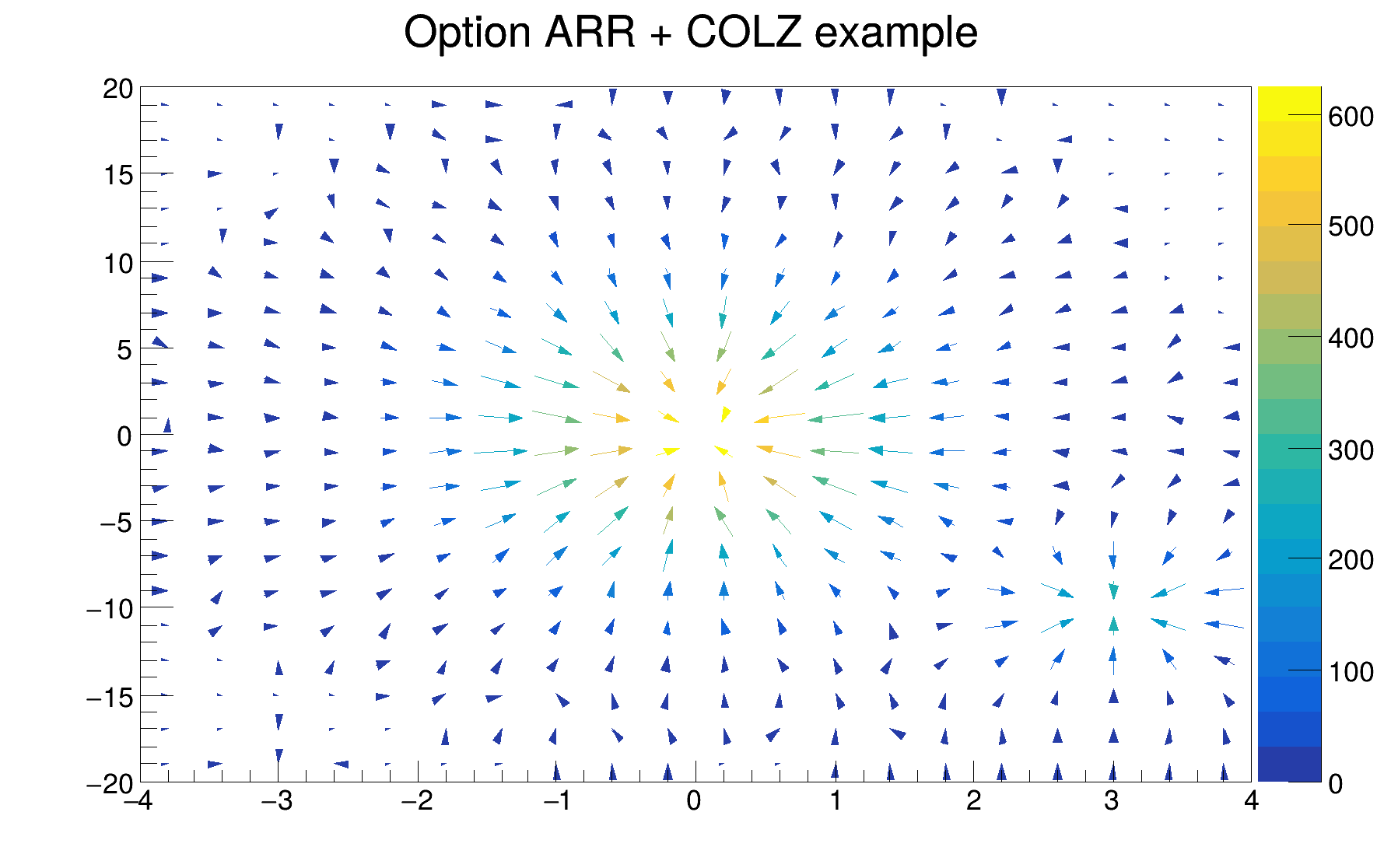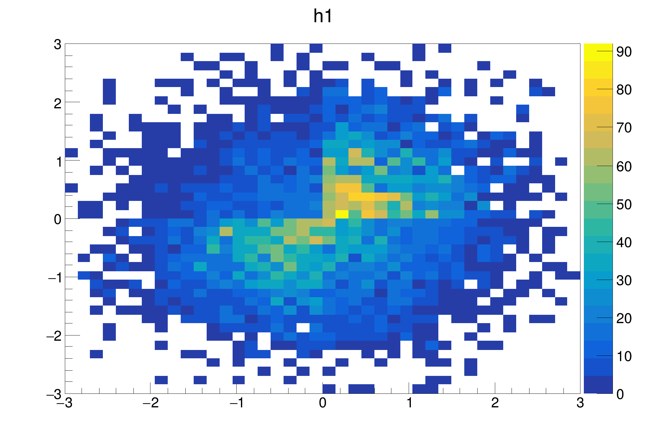 | "COL" | A box is drawn for each cell with a color scale varying with contents. All the none empty bins (bins with content and error equal to 0) are painted. Empty bins are not painted unless some bins have a negative content because in that case the null bins might be not empty. TProfile2D histograms are handled differently because, for this type of 2D histograms, it is possible to know if an empty bin has been filled or not. So even if all the bins' contents are positive some empty bins might be painted. And vice versa, if some bins have a negative content some empty bins might be not painted (default). |