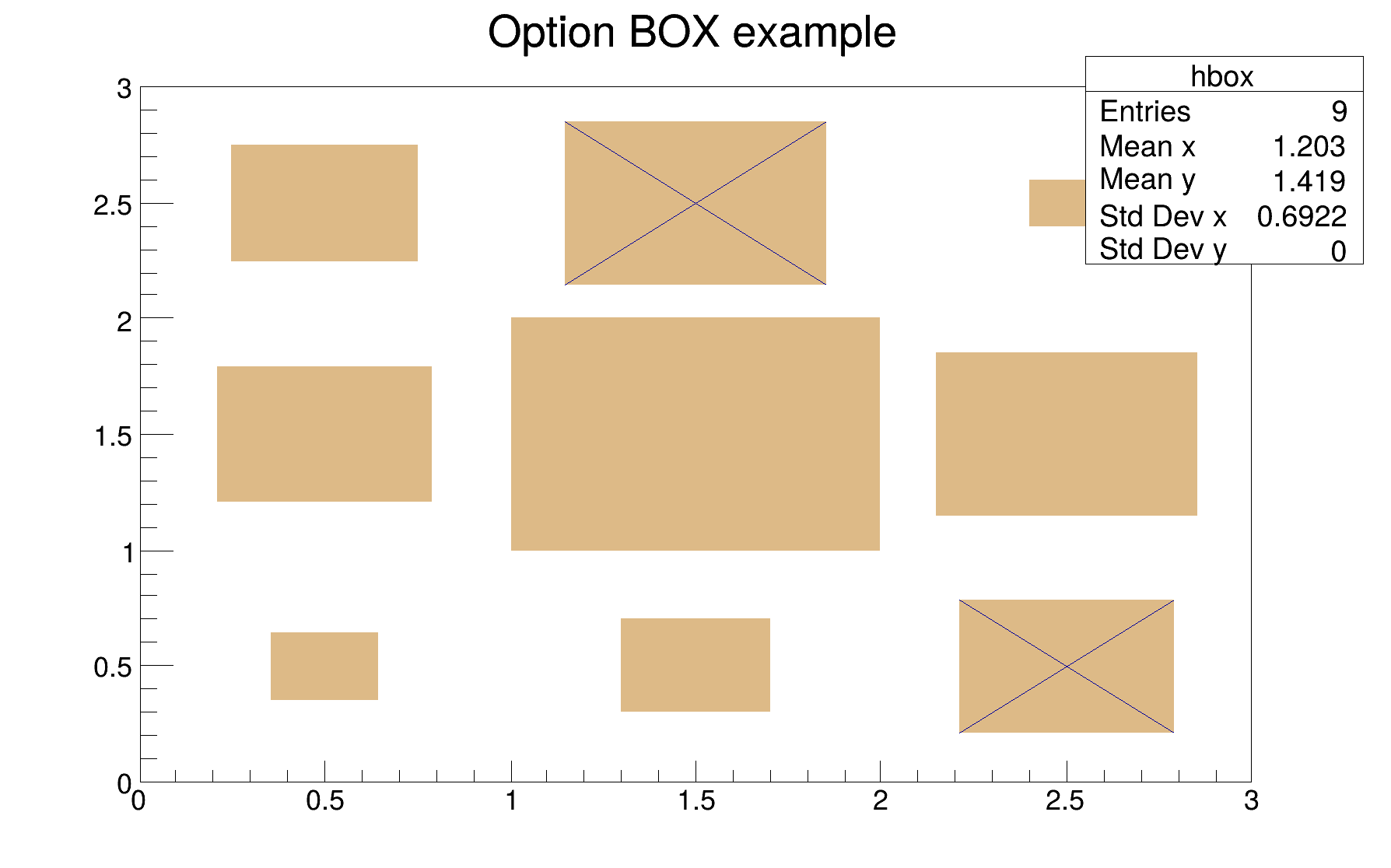 | "BOX" | A box is drawn for each cell with surface proportional to the content's absolute value. A negative content is marked with a X. |