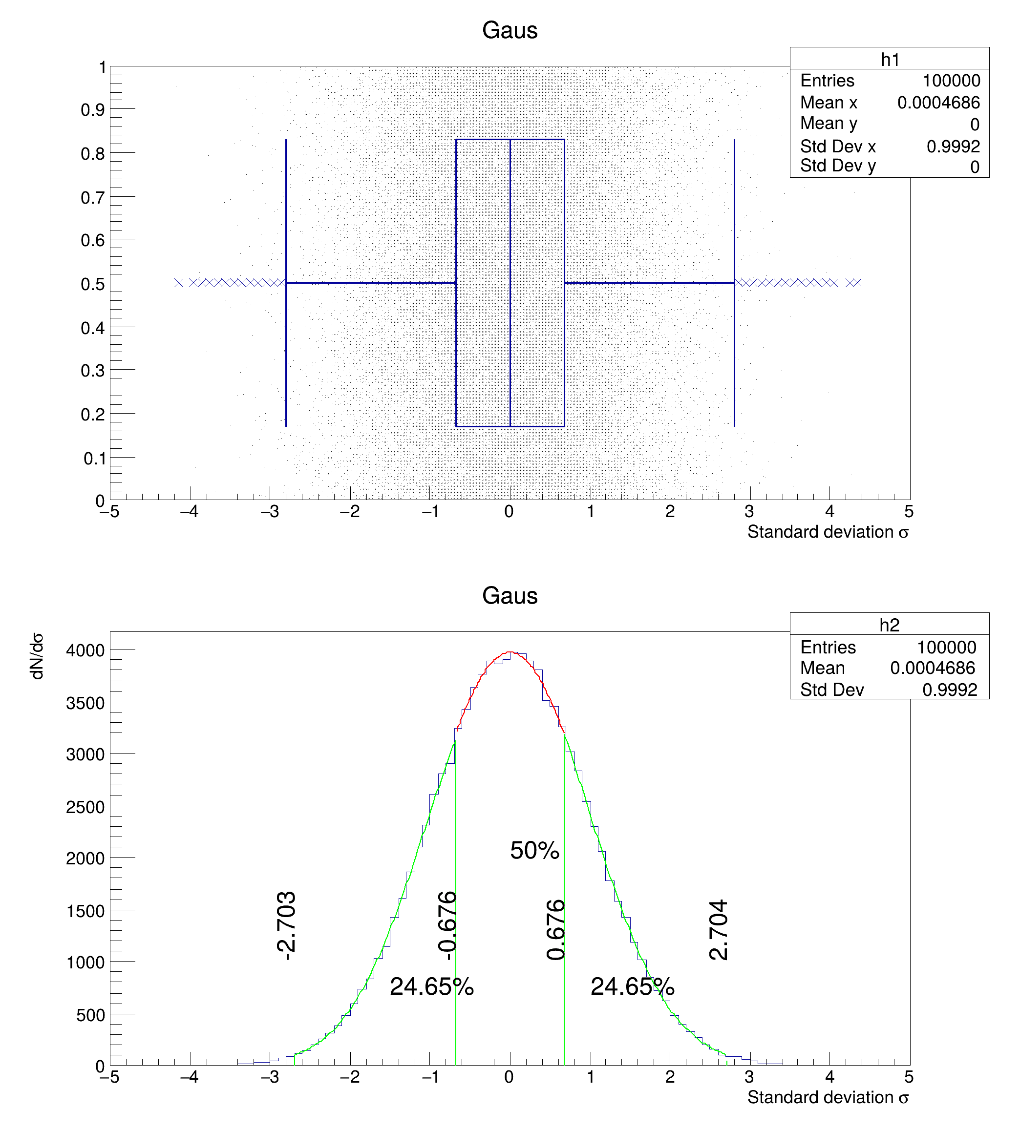 root [0] h->Draw(); // Draw "h" using the standard histogram representation.