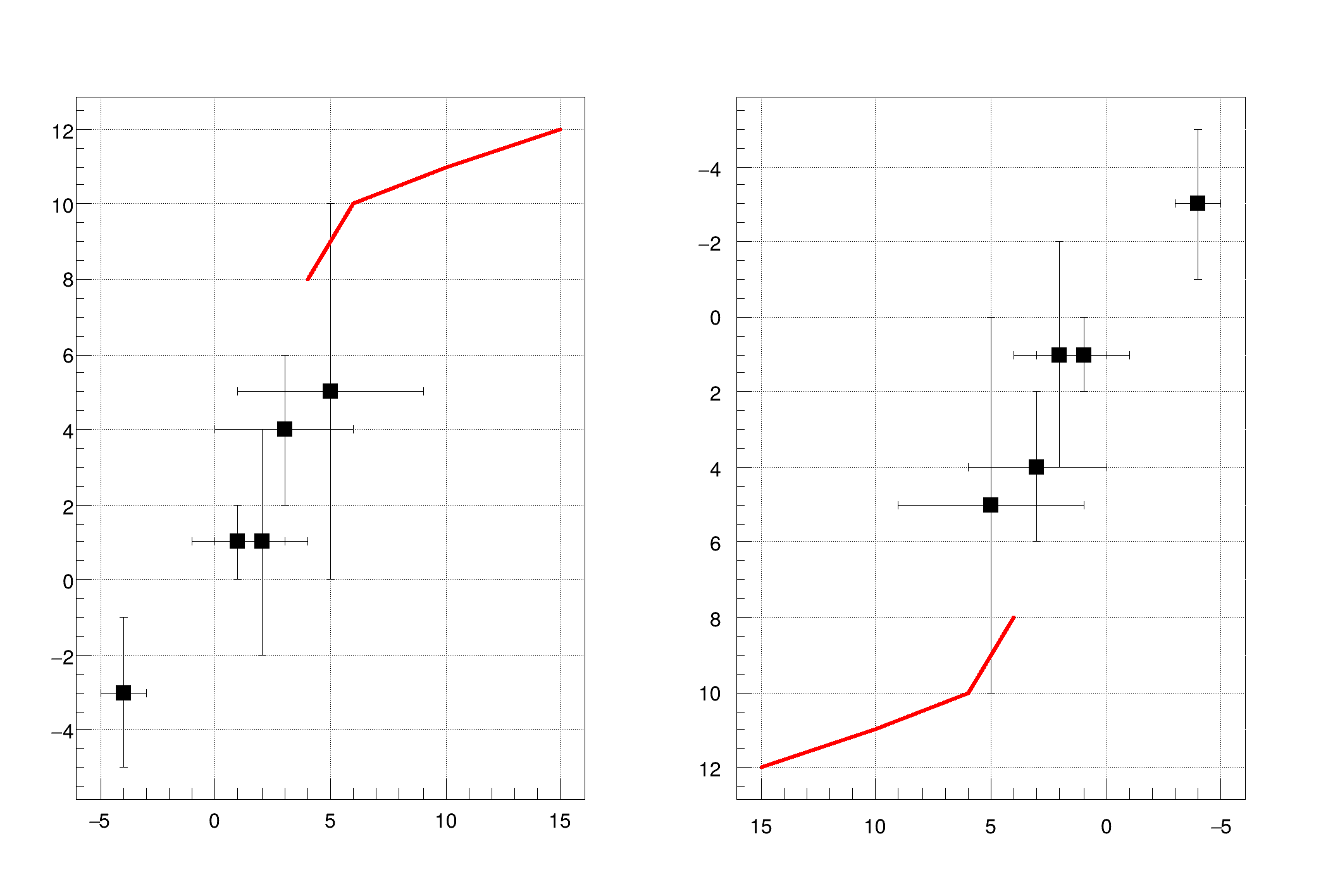 When a TMultiGraph is drawn, the X-axis is drawn with increasing values from left to right and the Y-axis from bottom to top. The two options RX and RY allow to change this order. The option RX allows to draw the X-axis with increasing values from right to left and the RY option allows to draw the Y-axis with increasing values from top to bottom. The following example illustrate how to use these options.