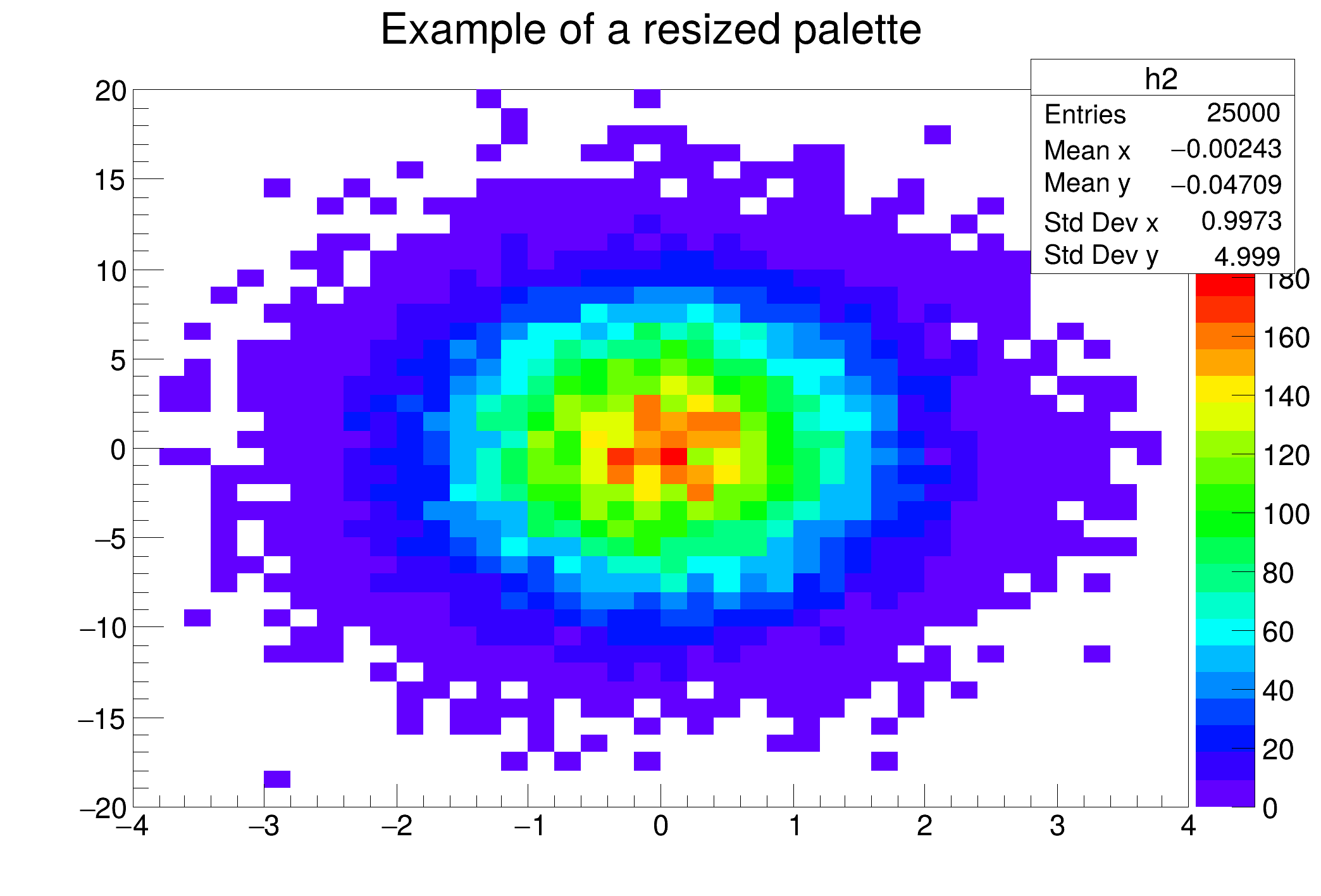 A TPaletteAxis object is used to display the color palette when drawing 2-d histograms.