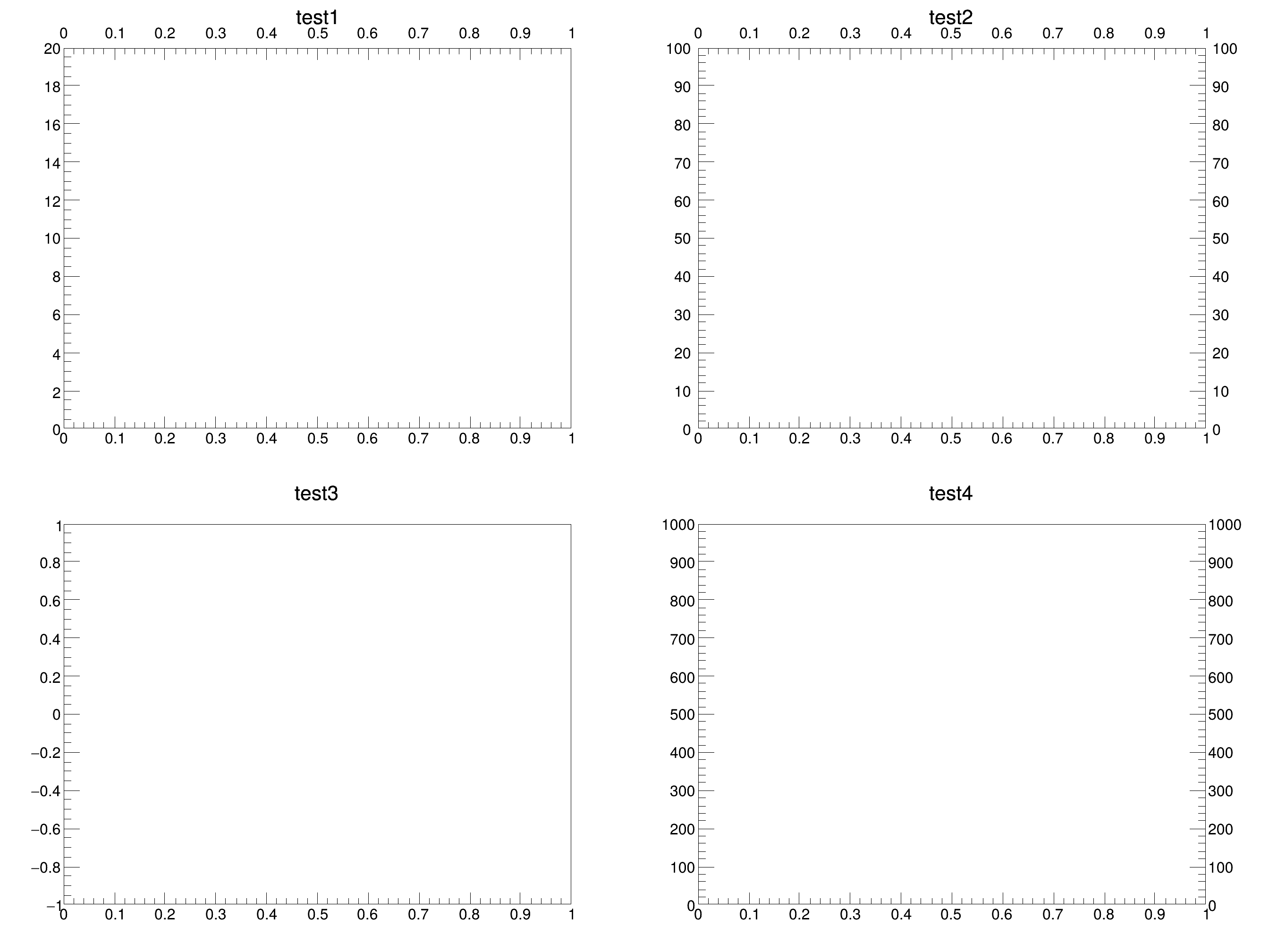 Example of script showing how to divide a canvas into adjacent subpads + axis labels on the top and right side of the pads. | |